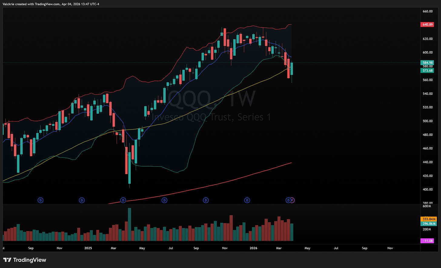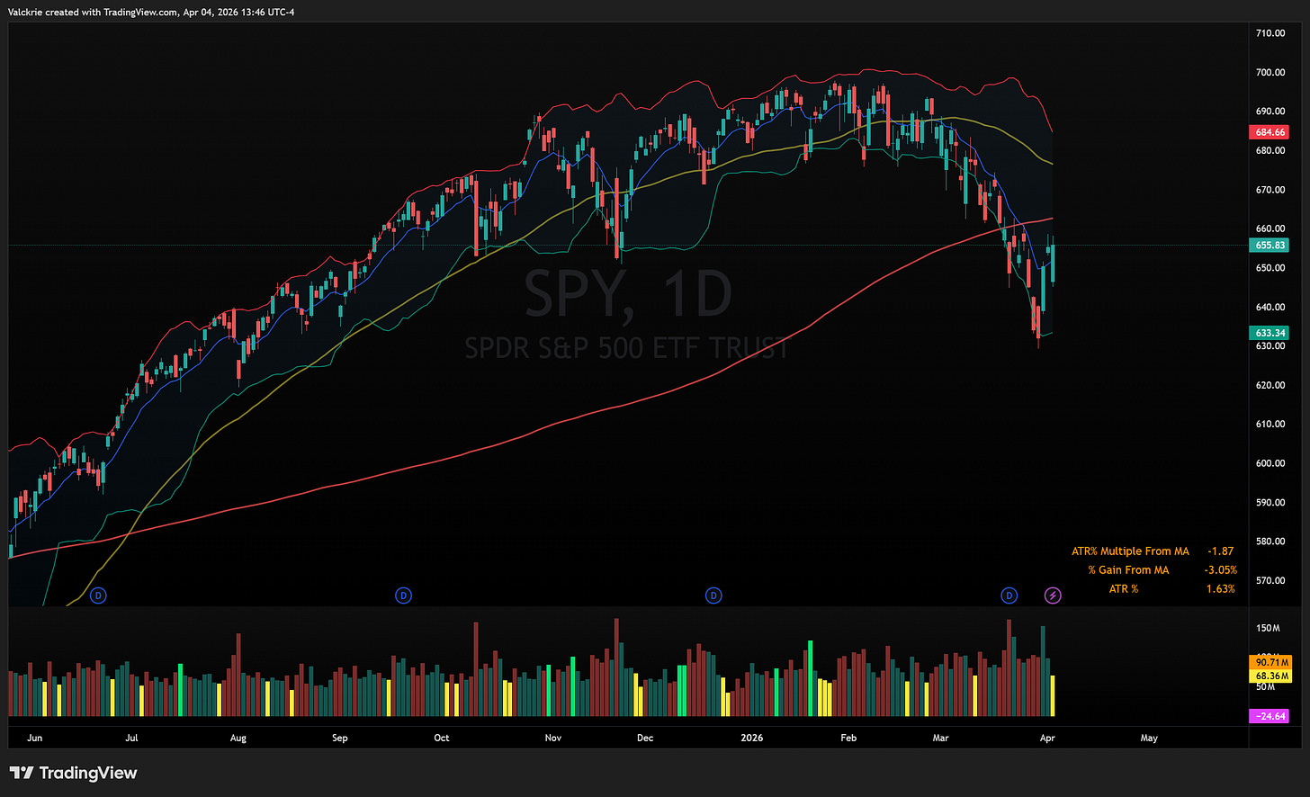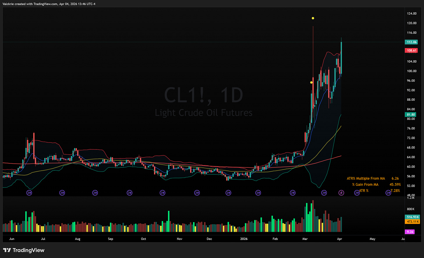 Every week in March ended with indices selling off into the weekend. Thursday’s price action was the first meaningful character change since the war began. Stocks closing strong into a long holiday weekend, with participants willingly carrying risk premium through Good Friday, is a notable shift in behaviour.