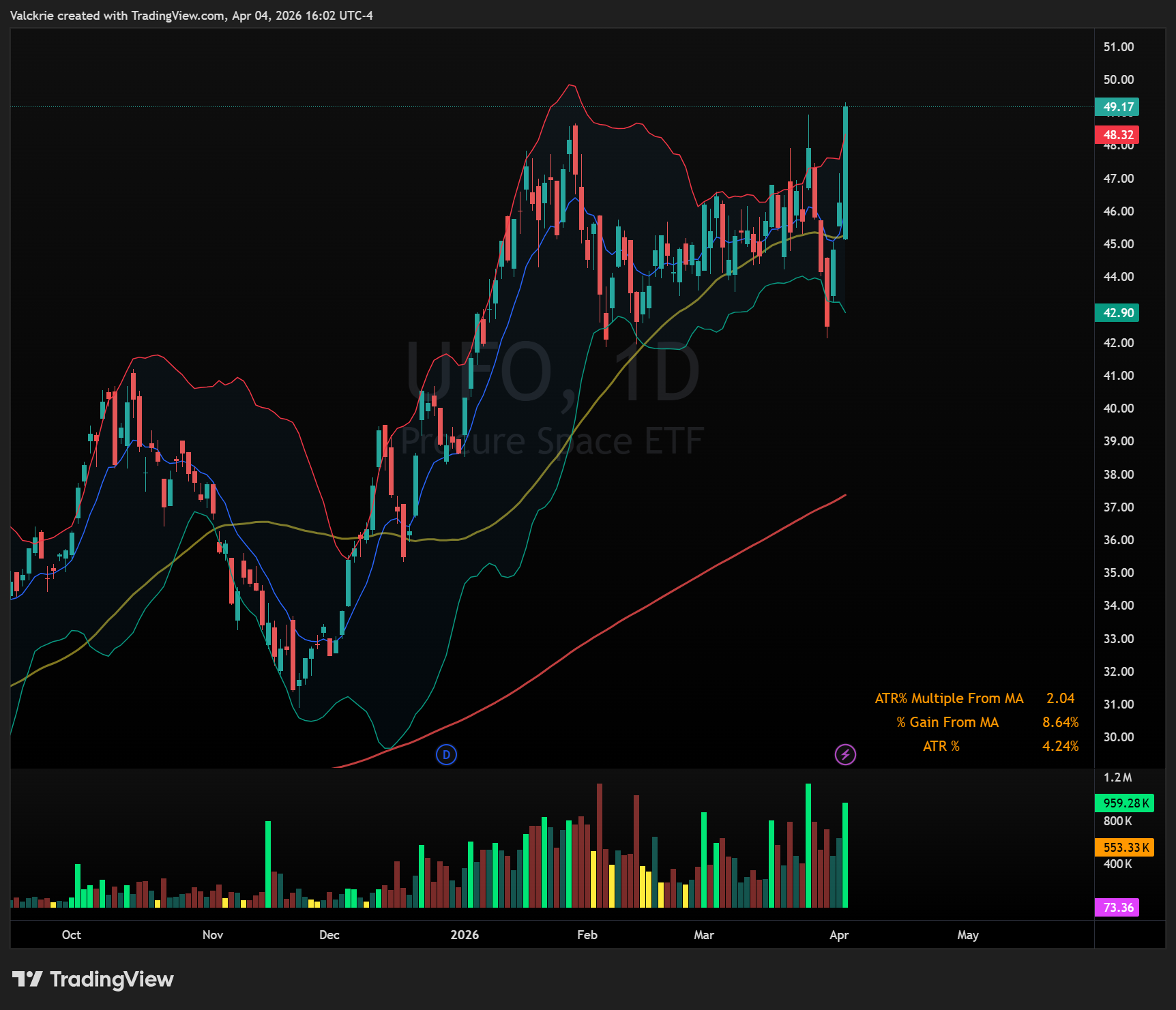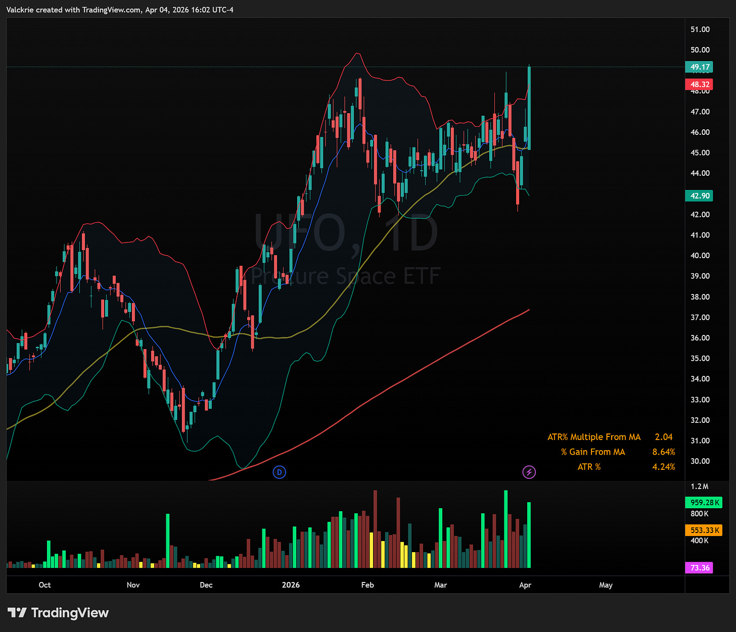 More broadly, the space sector has remained one of the stronger pockets of the market. The ETFs UFO 0.00%↑, ARKX 0.00%↑, ITA 0.00%↑, and XAR 0.00%↑ reflect that relative strength at the index level.