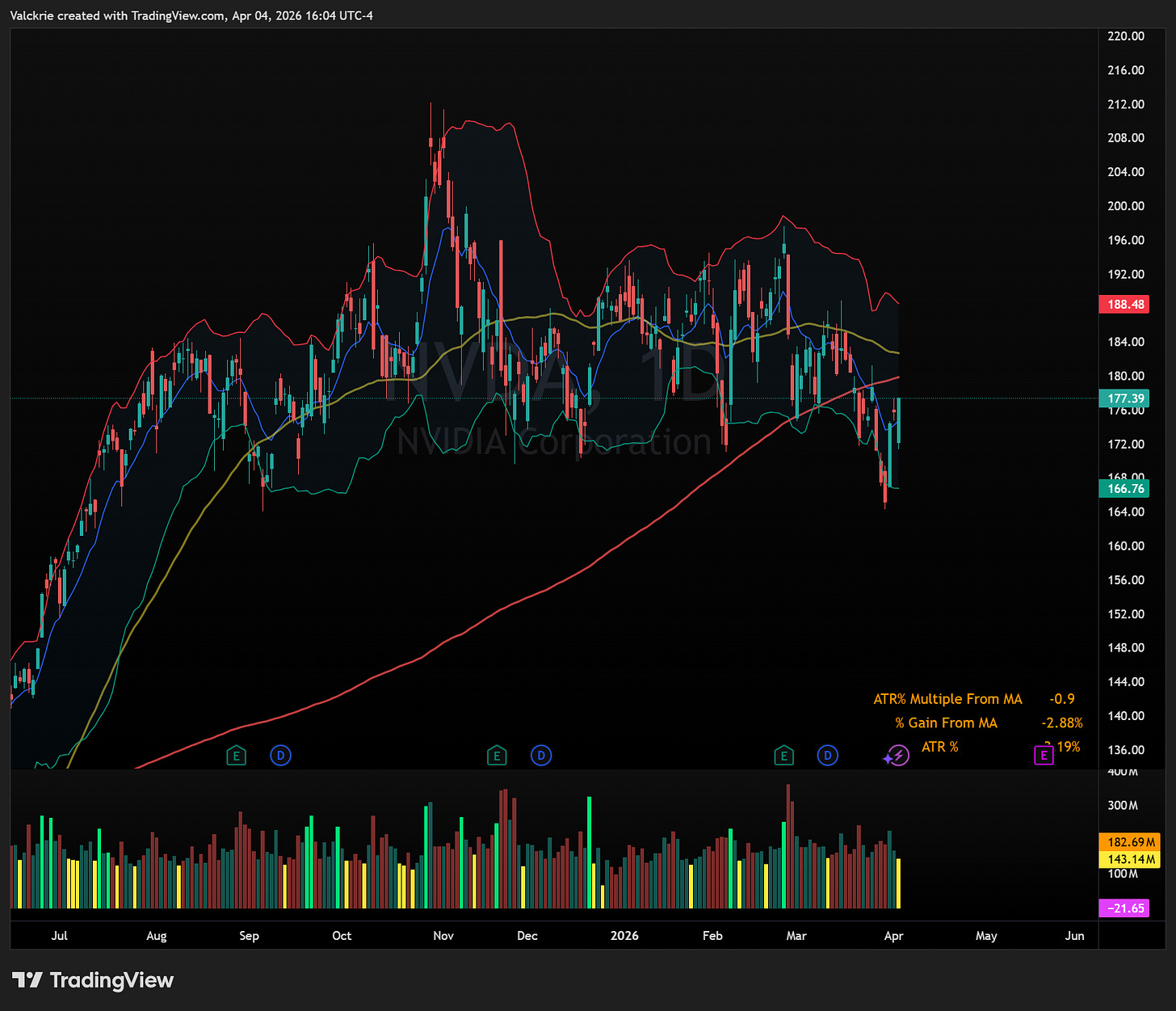 NVDA 0.00%↑ remains less attractive by comparison, having broken down from its multi-month trading range and still sitting below the 200-day moving average, technically in a brief downtrend still.