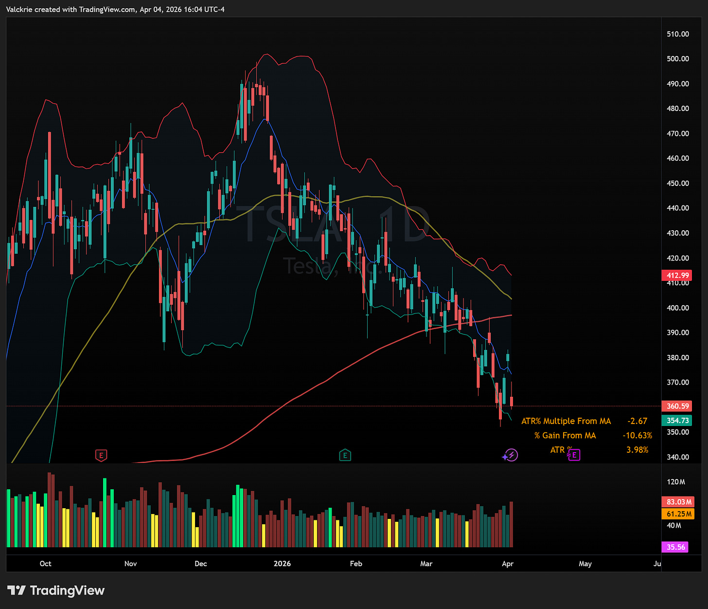 TSLA 0.00%↑ reported Q1 deliveries and production rose year-over-year but fell from the prior quarter. More notably, it was visibly weak on Thursday, closing near the lows of the session on a day when the broader market was finishing near highs. That divergence is worth noting.