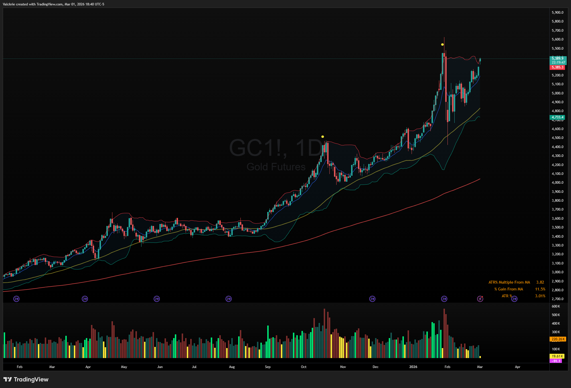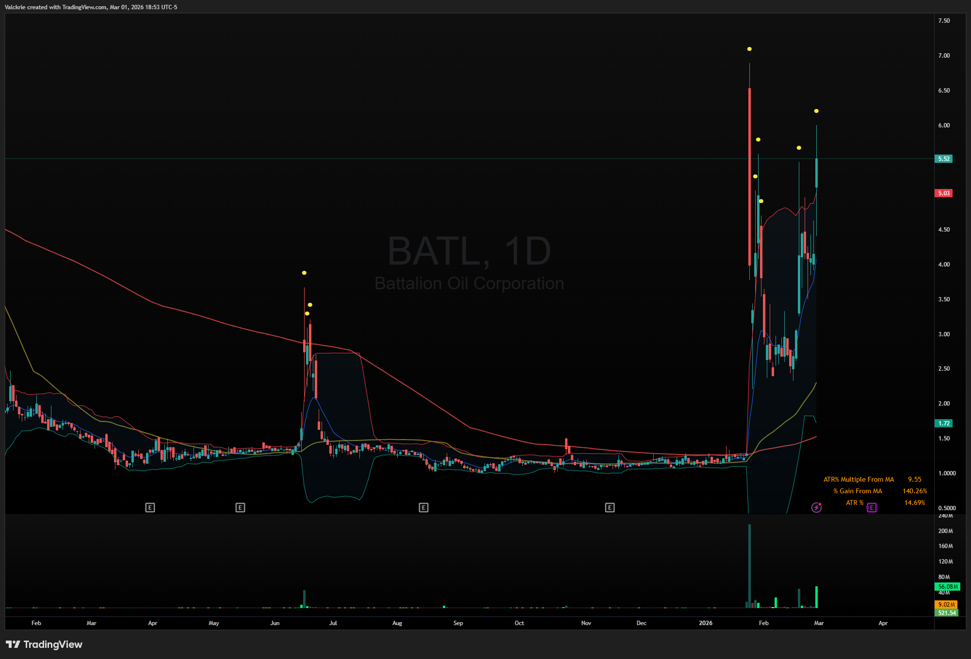 Oil, silver, and gold will be in play all week. Brent crude is already up 10% on the Sunday open, gold is trading above $5,300, and silver is pressing toward $95. If the Strait of Hormuz remains disrupted, these moves have room to run significantly further. Watch for momentum in small and microcap oil names: BATL 0.00%↑, INDO 0.00%↑.