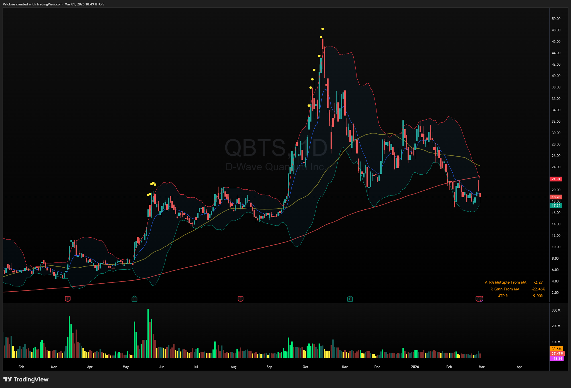 Quantum stocks sold off after earnings this week, with QBTS 0.00%↑ threatening to make new lows.