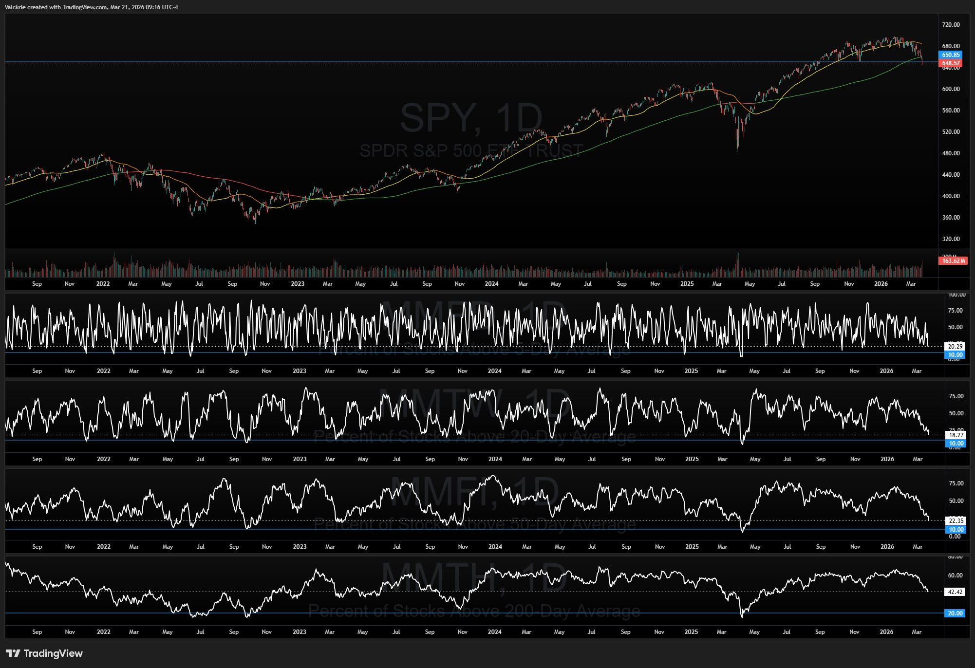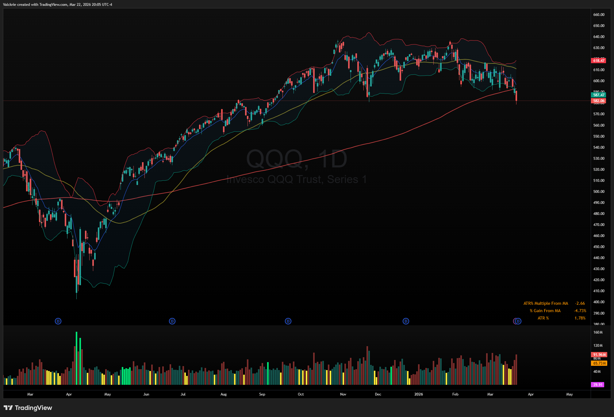 The market has settled into a behavioral routine that is recognizable and exhausting. Breaking it will require either a material resolution on the geopolitical front or a catalyst large enough to shift the narrative. Neither appears imminent. The Strait of Hormuz remains unresolved. The Fed is on hold and leaning hawkish. Yields are rising. Breadth is deteriorating. The major indices SPY and QQQ closed below its 200-day SMA. The burden of proof sits with the bulls.