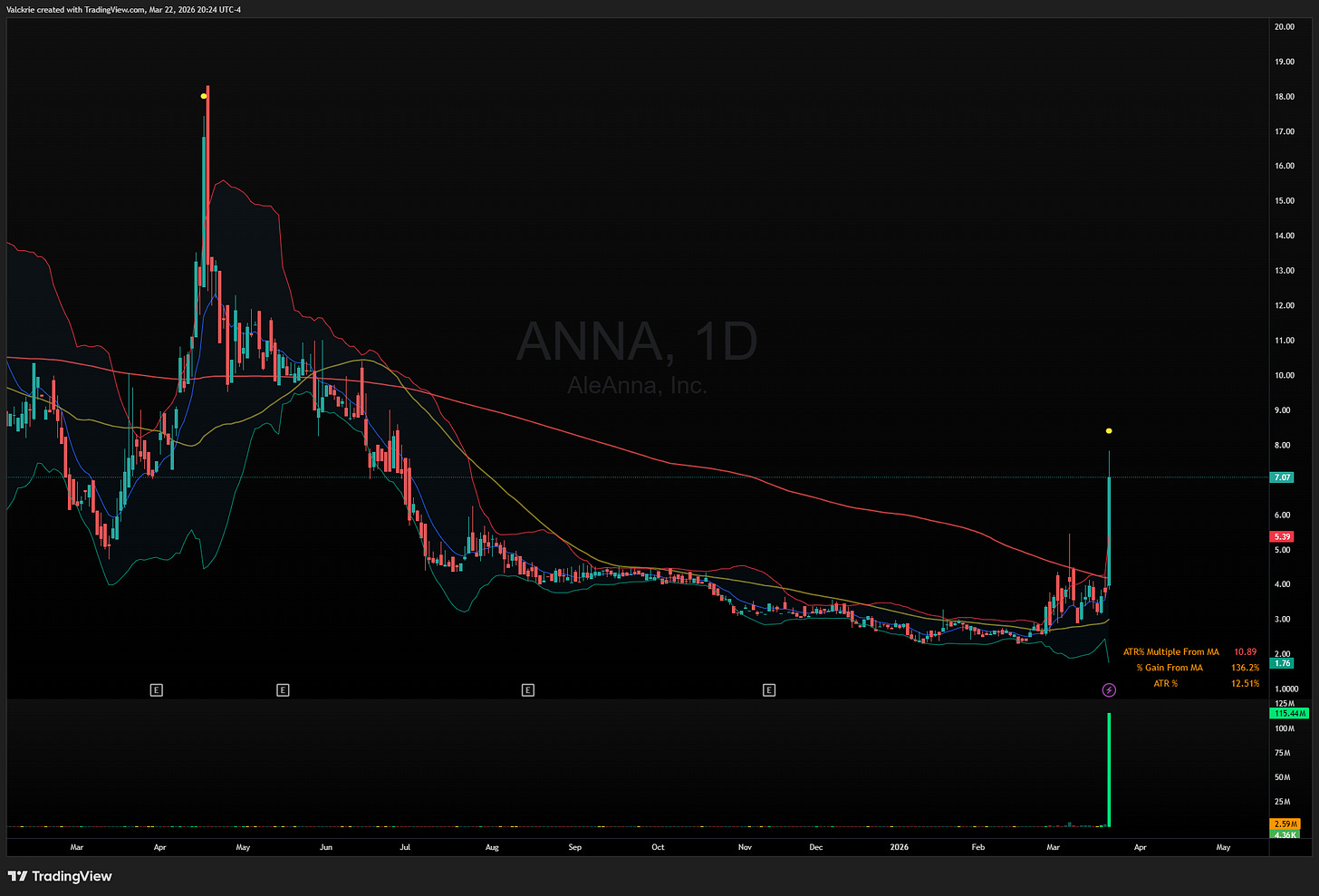 ANNA 0.00%↑: The European natural gas name saw heavy volume on Friday, worth monitoring for follow-through as energy infrastructure remains in focus amid the broader conflict.