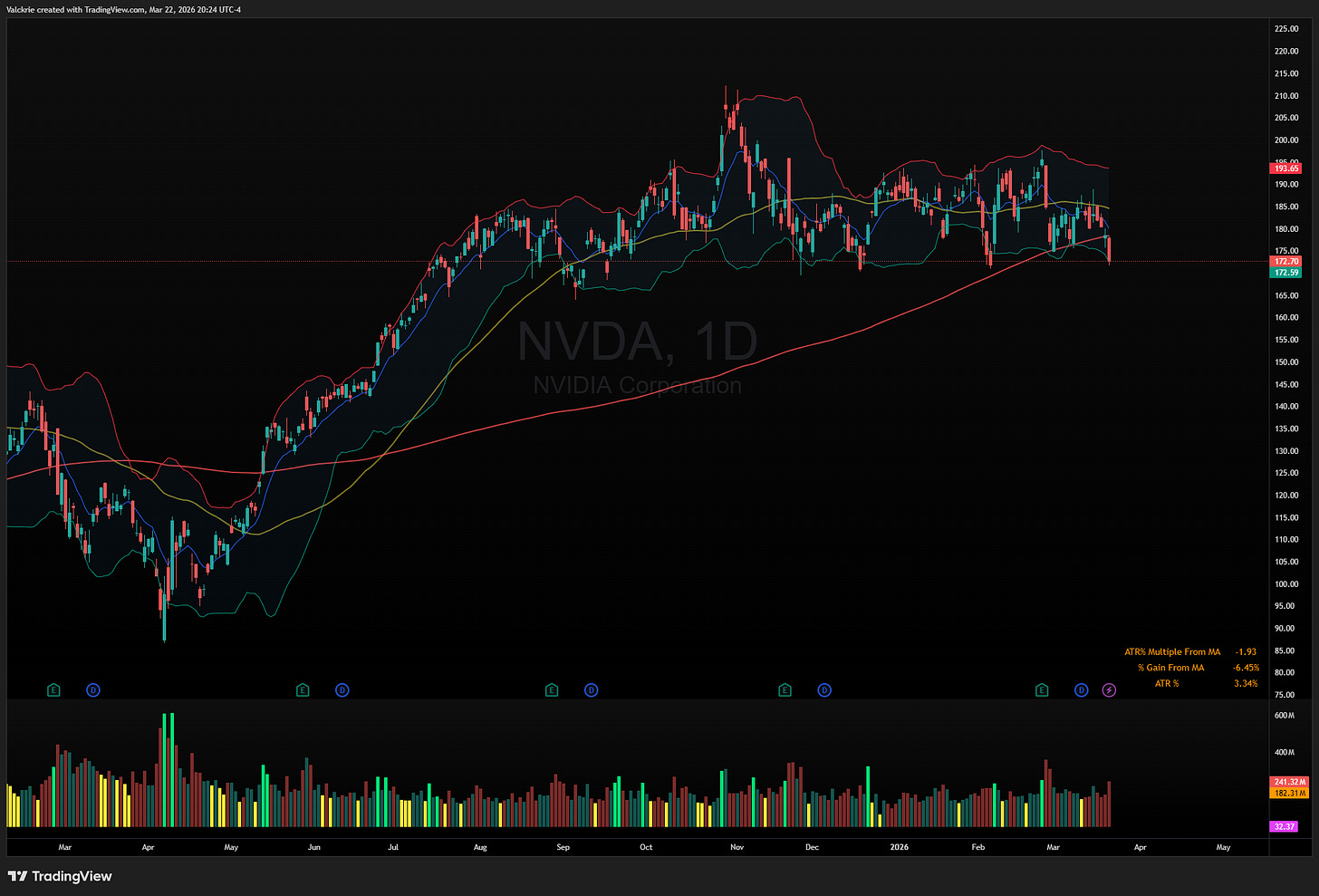 NVDA 0.00%↑: Approaching the multi-month support area around $170 that has held consistently since last July. The key question this week is whether that level holds again or whether the broader market pressure is finally enough to crack it.