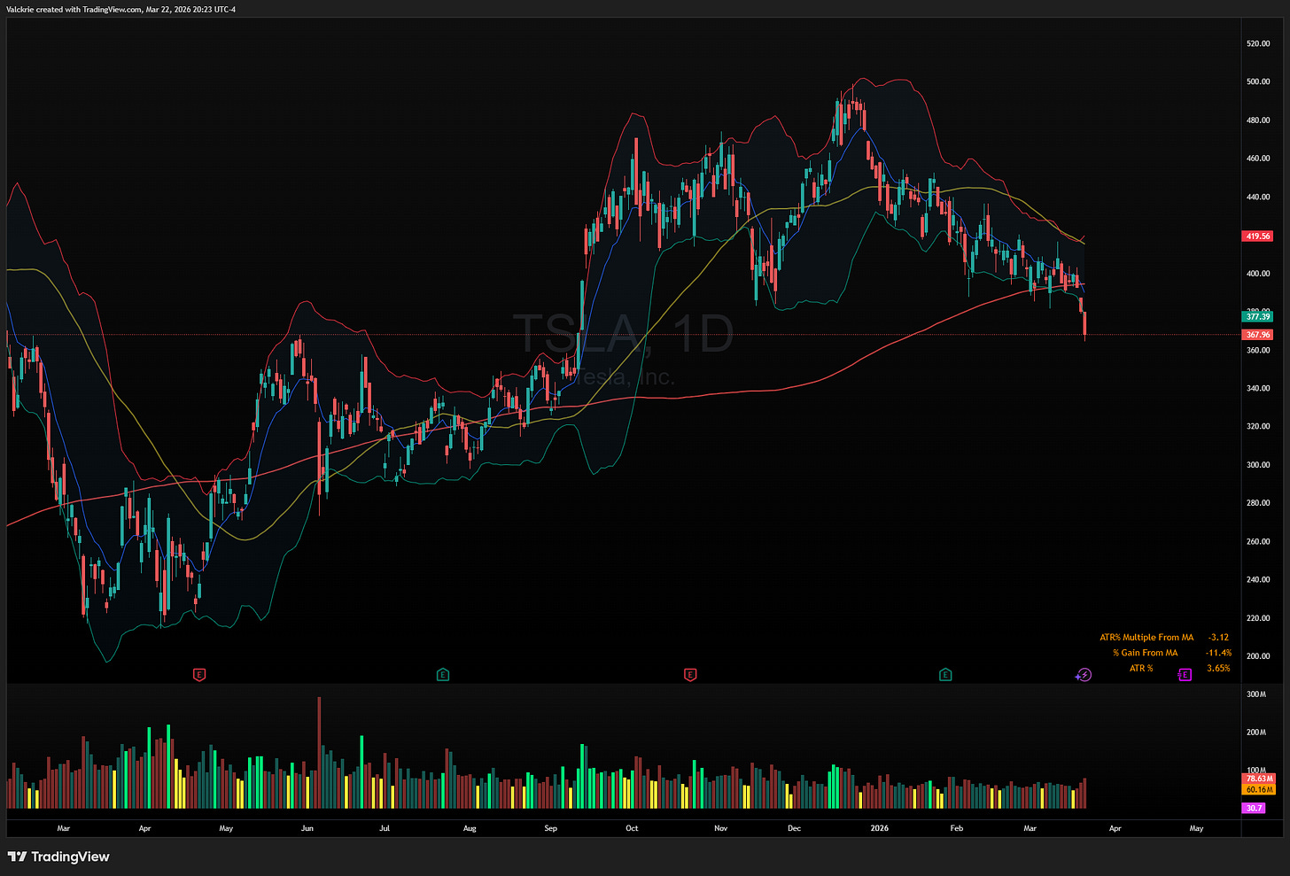 TSLA 0.00%↑: Broke down from a multi-month range this week. The breakdown is meaningful from a technical standpoint - a stock that had been range-bound for months resolving lower deserves some attention.