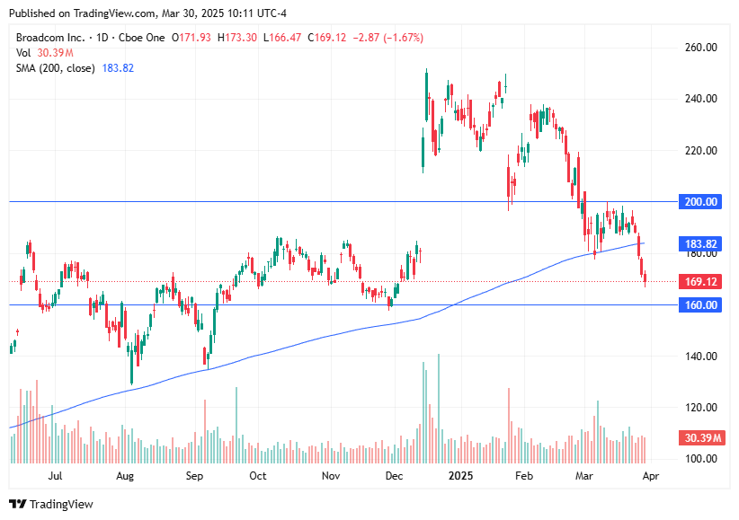AVGO 0.00%↑ broke down from its recent range last week. Has been down 5 days in a row and could see a small pause bounce but volume has been low and steady, no signs of capitulation yet