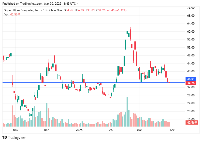 SMCI 0.00%↑ breaking down from recent consolidation/bear flag range