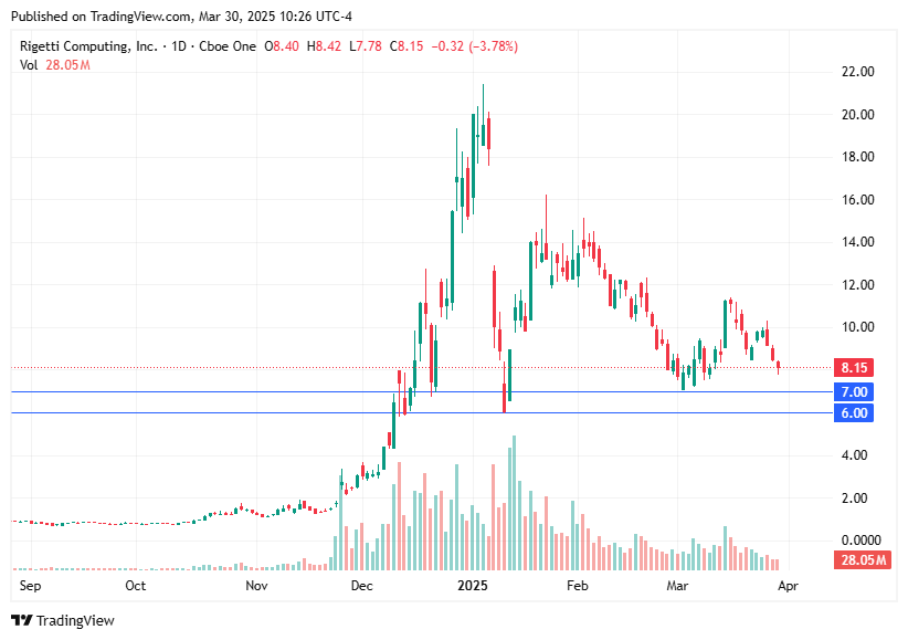 RGTI 0.00%↑ likely bounces at $7 area if keeps selling down into it. Eventually would want to see the level break but ideally after another bounce or more time