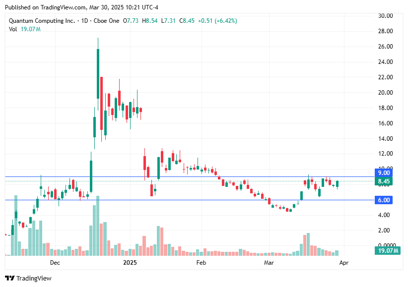 QUBT 0.00%↑ seems to be trading independently of the market and other quantum stocks for the last few days. Given the rest of the sector is in downtrend a breakout over $9 could fail easily