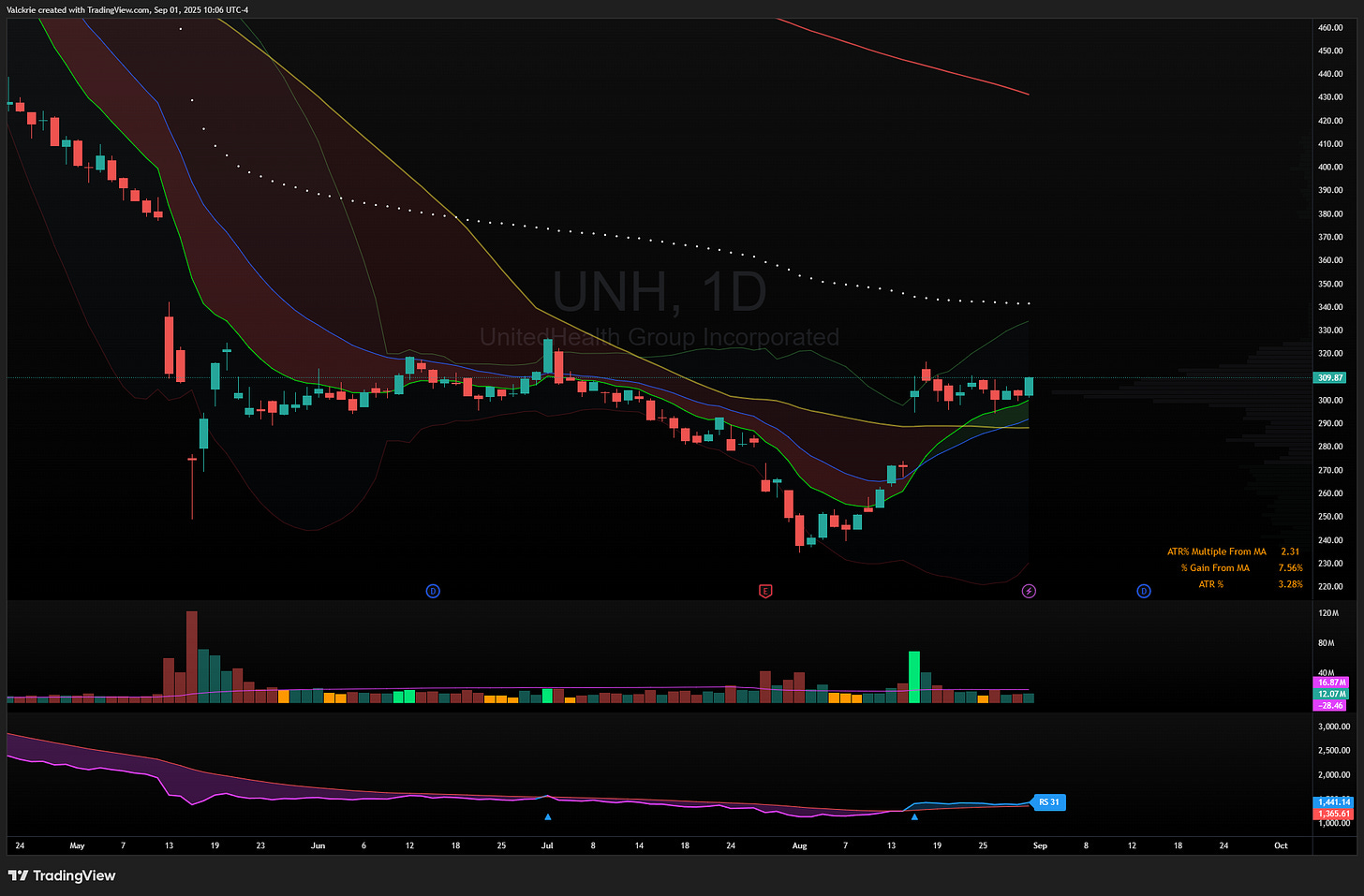 UNH 0.00%↑ holding the 300 level since Buffett’s disclosed stake. Could be forming a higher low on the daily chart, setting up for a continued bounce higher.