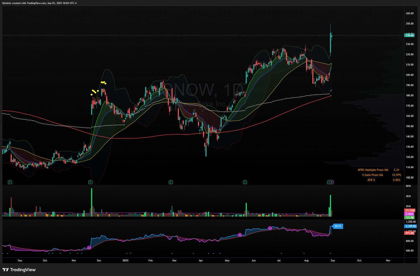 SNOW 0.00%↑ strong report breaking out of a multi year base.
