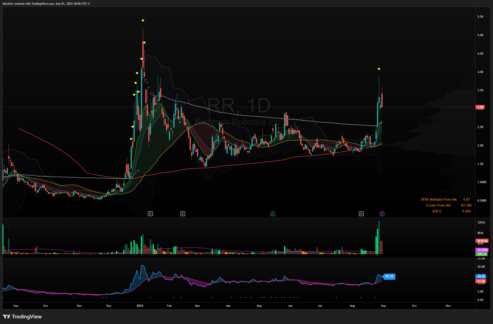 RR 0.00%↑ strong momentum burst this week on volume, after news that “Richtech Robotics Inc. entered into a Master Services Agreement with one of the world’s largest retailers.” Likely needs more time to consolidate before the next leg higher.