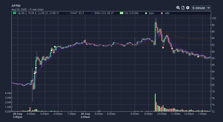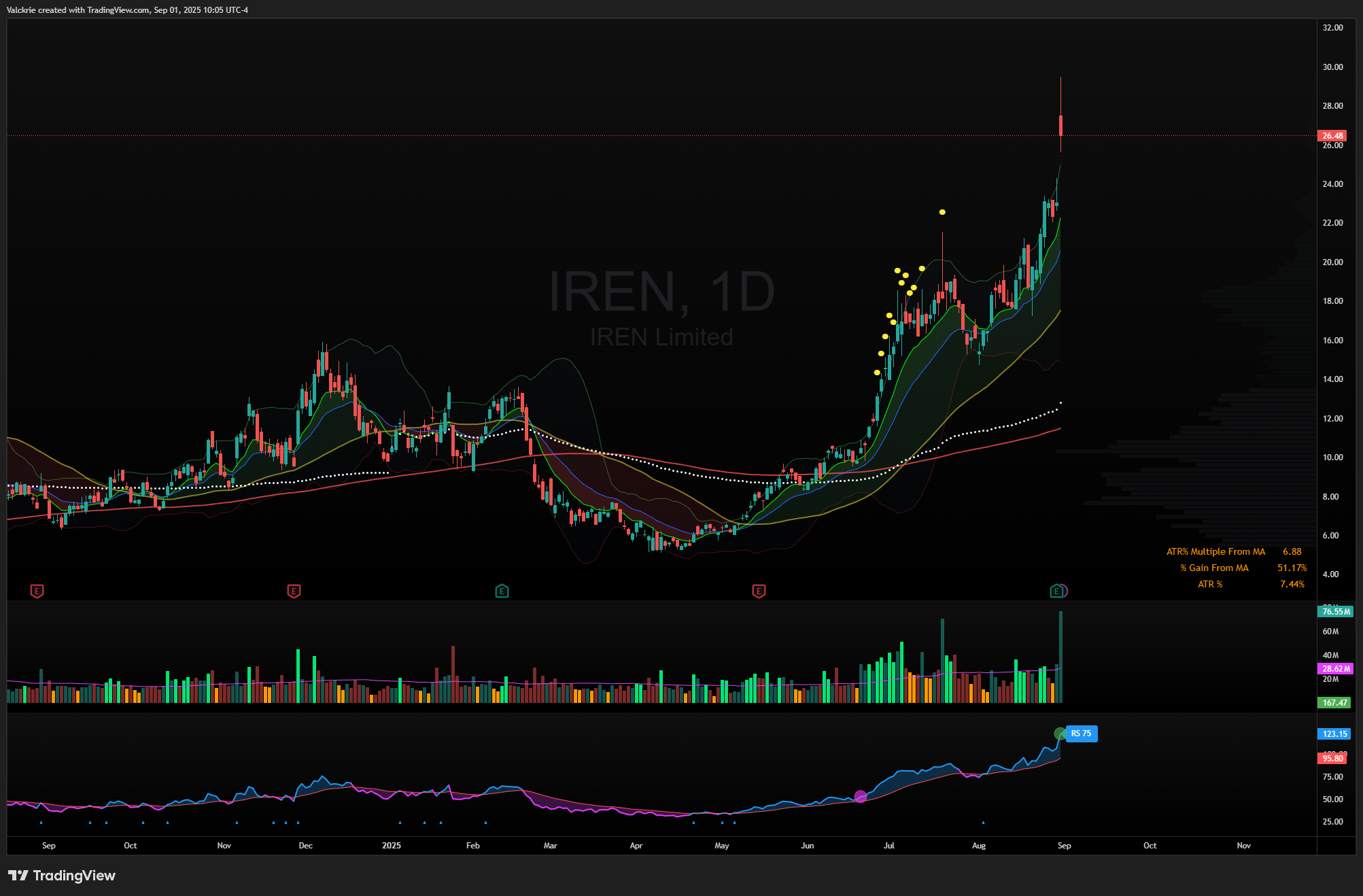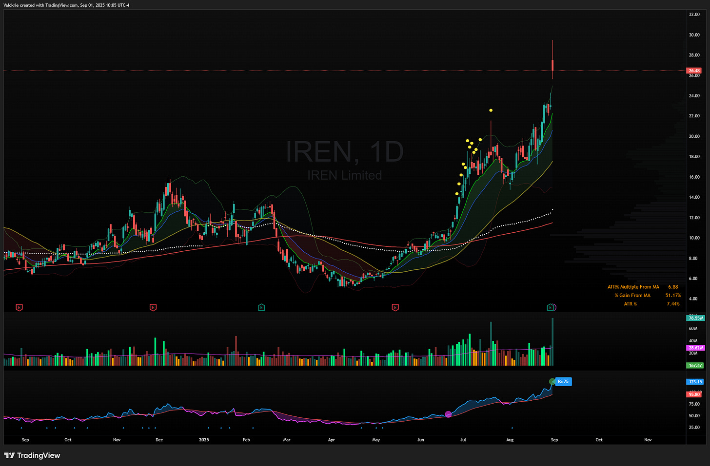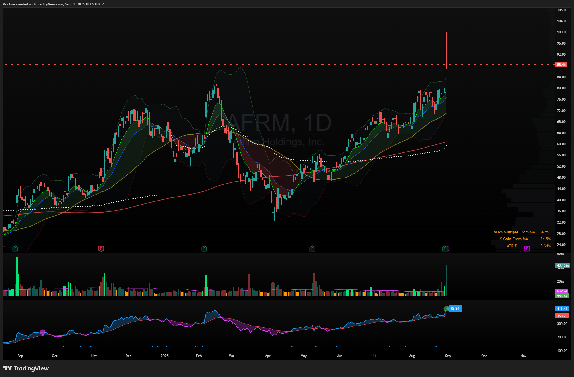 AFRM 0.00%↑ IREN 0.00%↑ posted solid earnings and made new 52-week highs, but sold off on gap, likely due to weak broader tape.