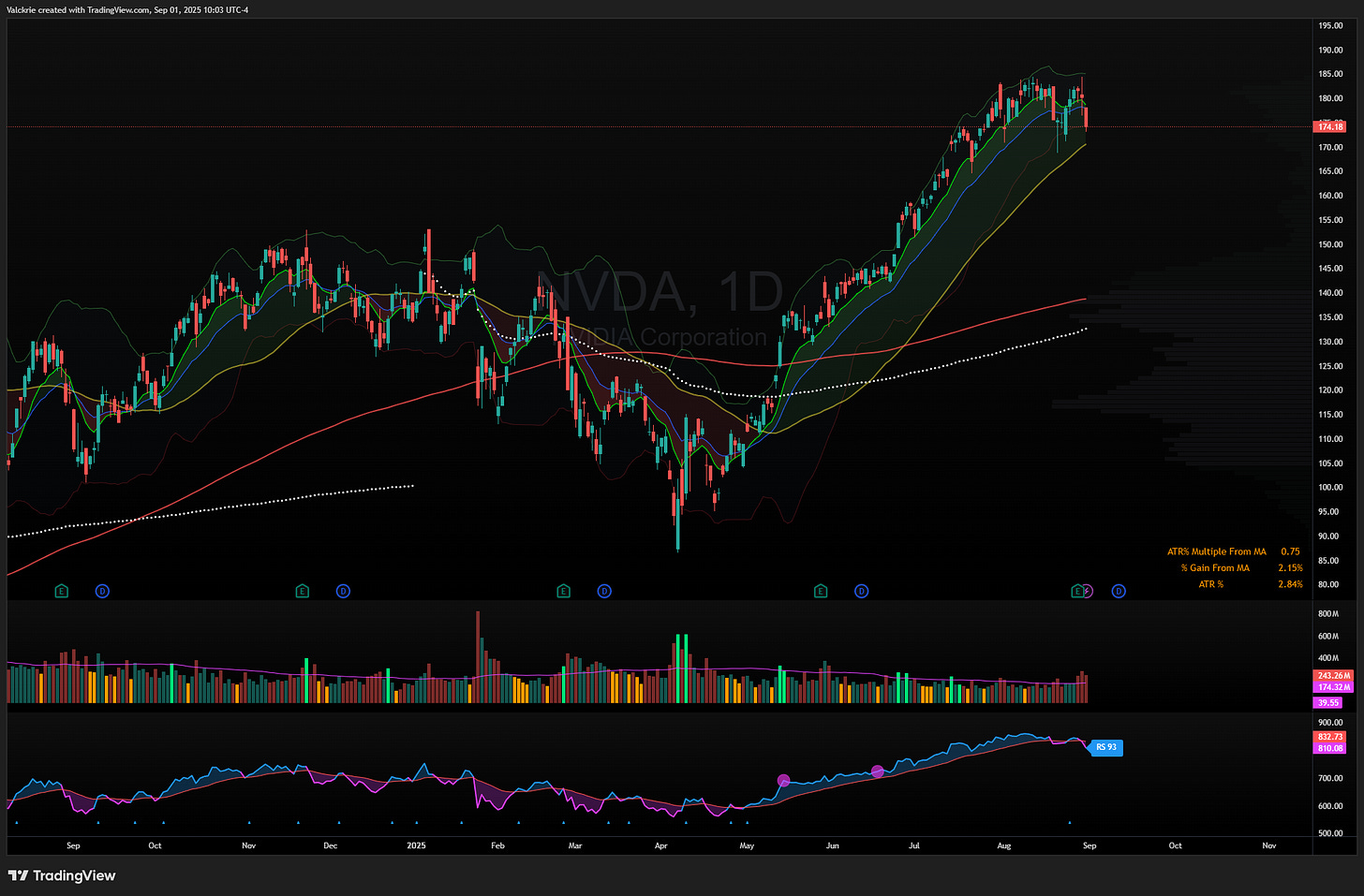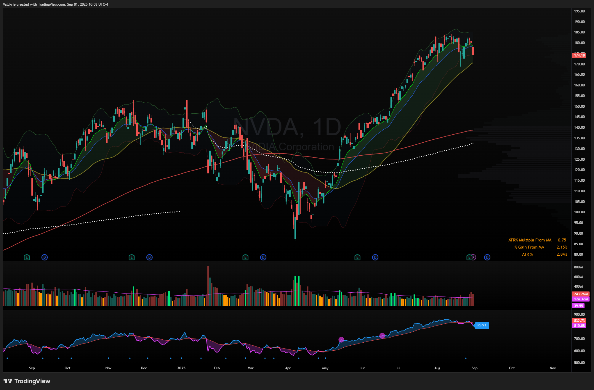 Markets started the week consolidating post-Jackson Hole gains. The highlight was NVIDIA earnings, which initially pushed the stock to all-time highs before it reversed, finishing the week ~5% below those levels. The reaction was relatively muted compared to prior earnings events.