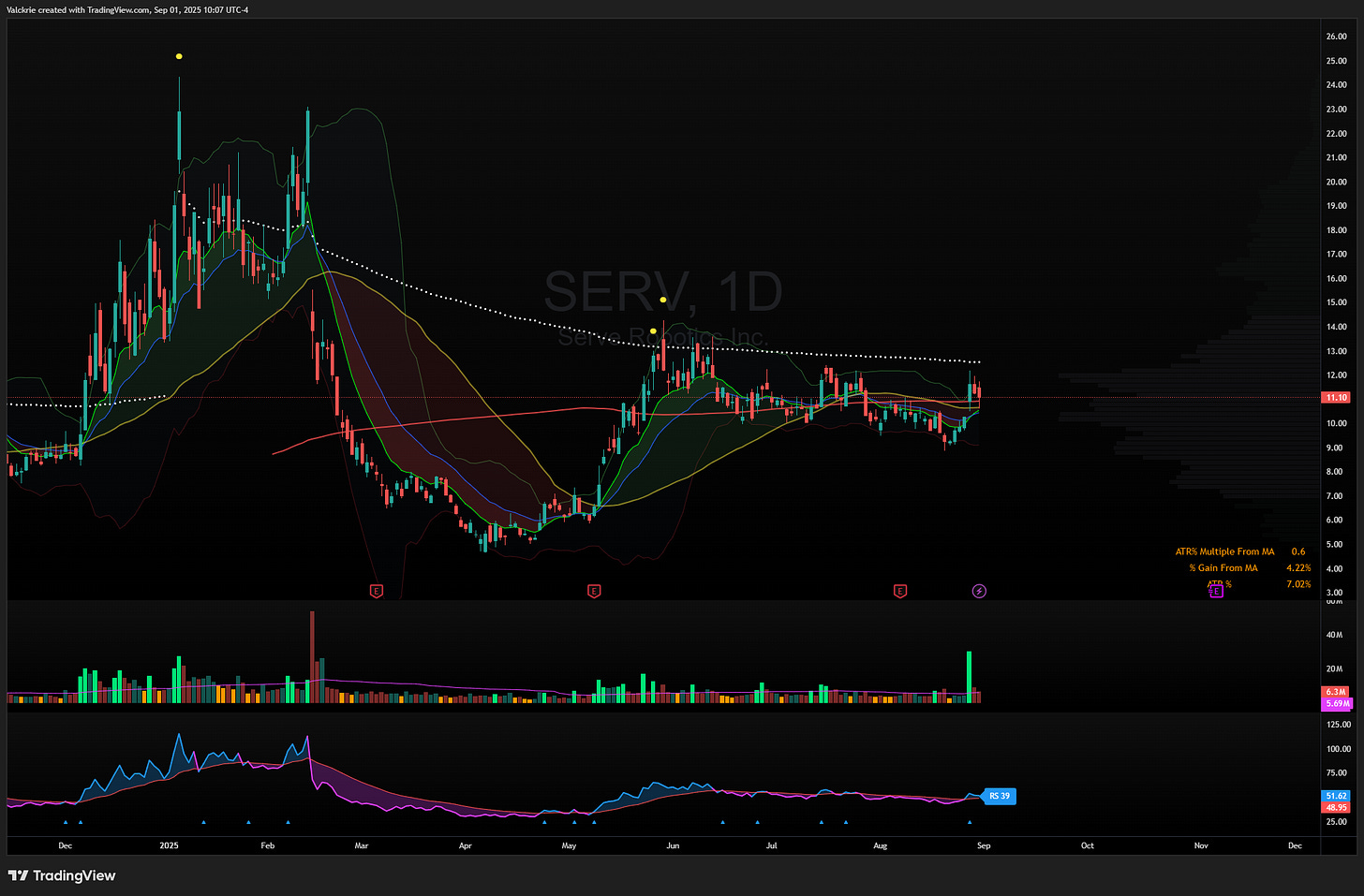 SERV 0.00%↑ key resistance level around $12, on watch for a decisive breakout through the level.