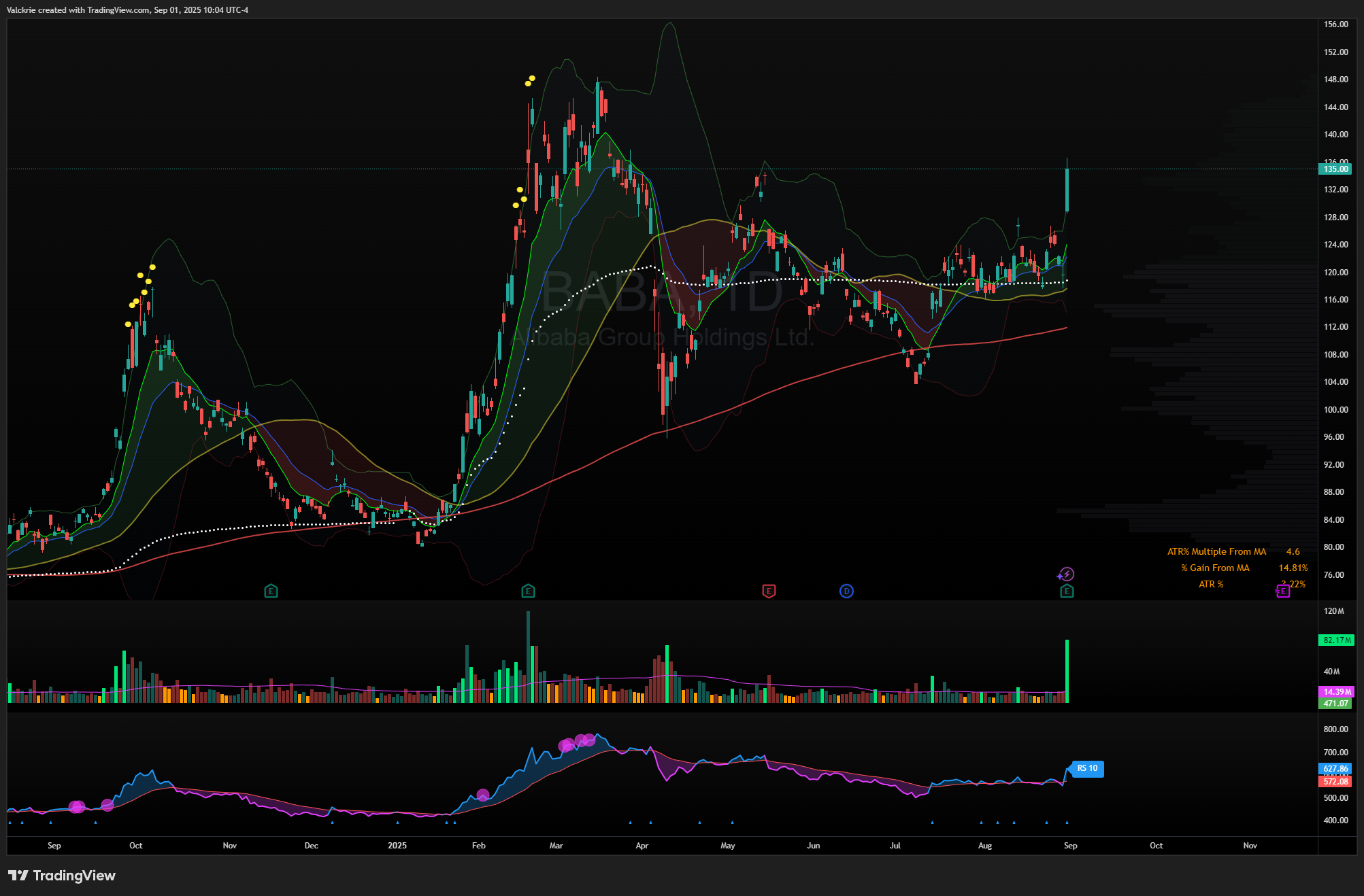 BABA 0.00%↑ broke out of a long base on strong earnings and volume. With the China index in an uptrend, BABA could emerge as a leading AI play in China.