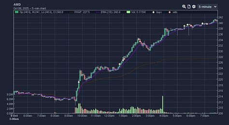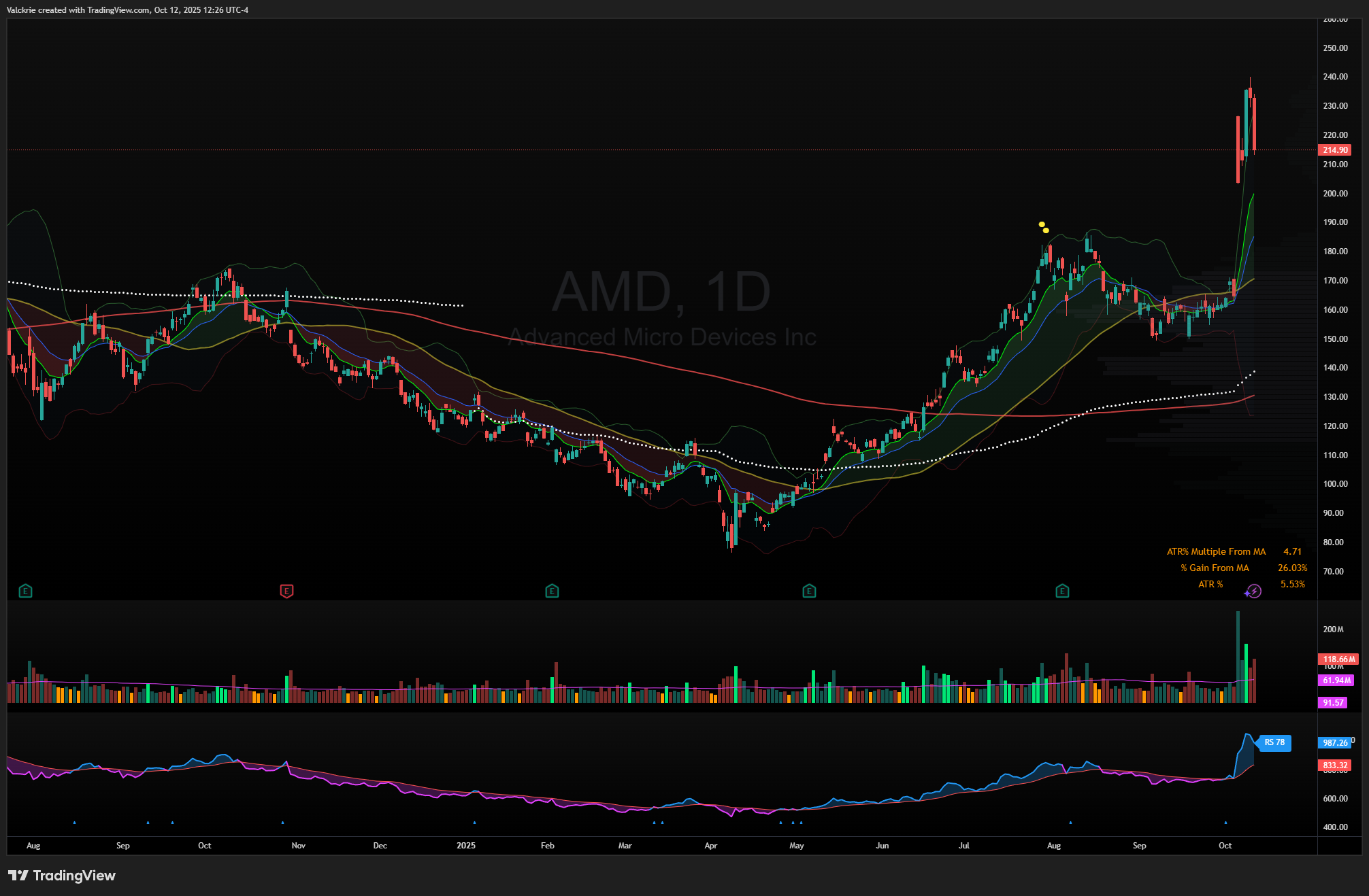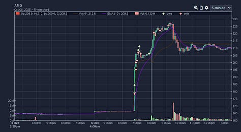 AMD 0.00%↑ offered multiple trade opportunities this week after major news on Monday: “AMD To Supply OpenAi Hundreds Of Thousands Of AI Chips; AMD Expects $100B+ Revenue From OpenAi, Others As Result Of Deal; OpenAi Recieves Warrant For To Buy Up To 10% AMD Stake At 1 Cent/Share”