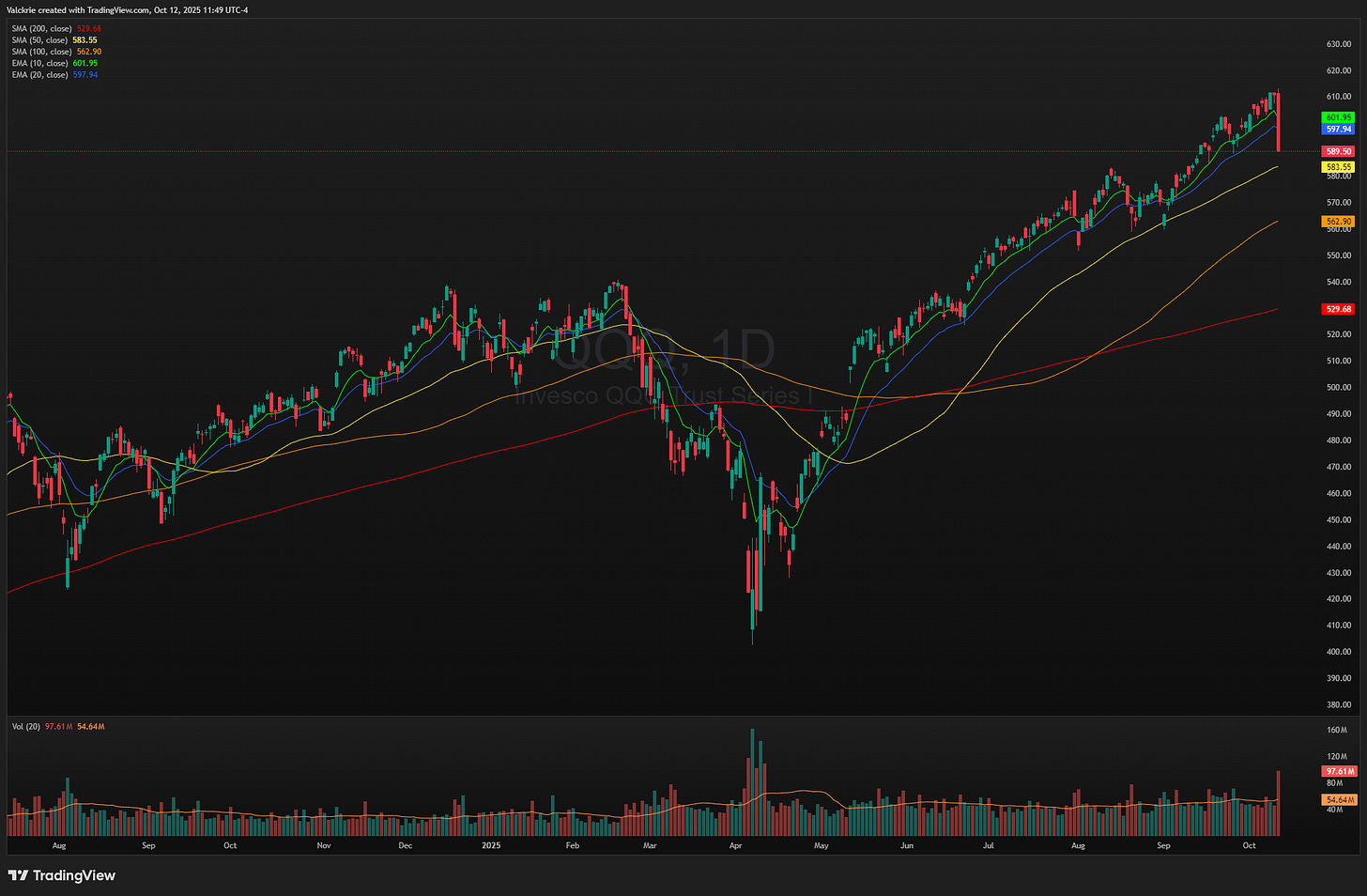 The Nasdaq 100 (QQQ) closed down -3.47%, marking its largest single-day decline since the tariff flare-ups in April.