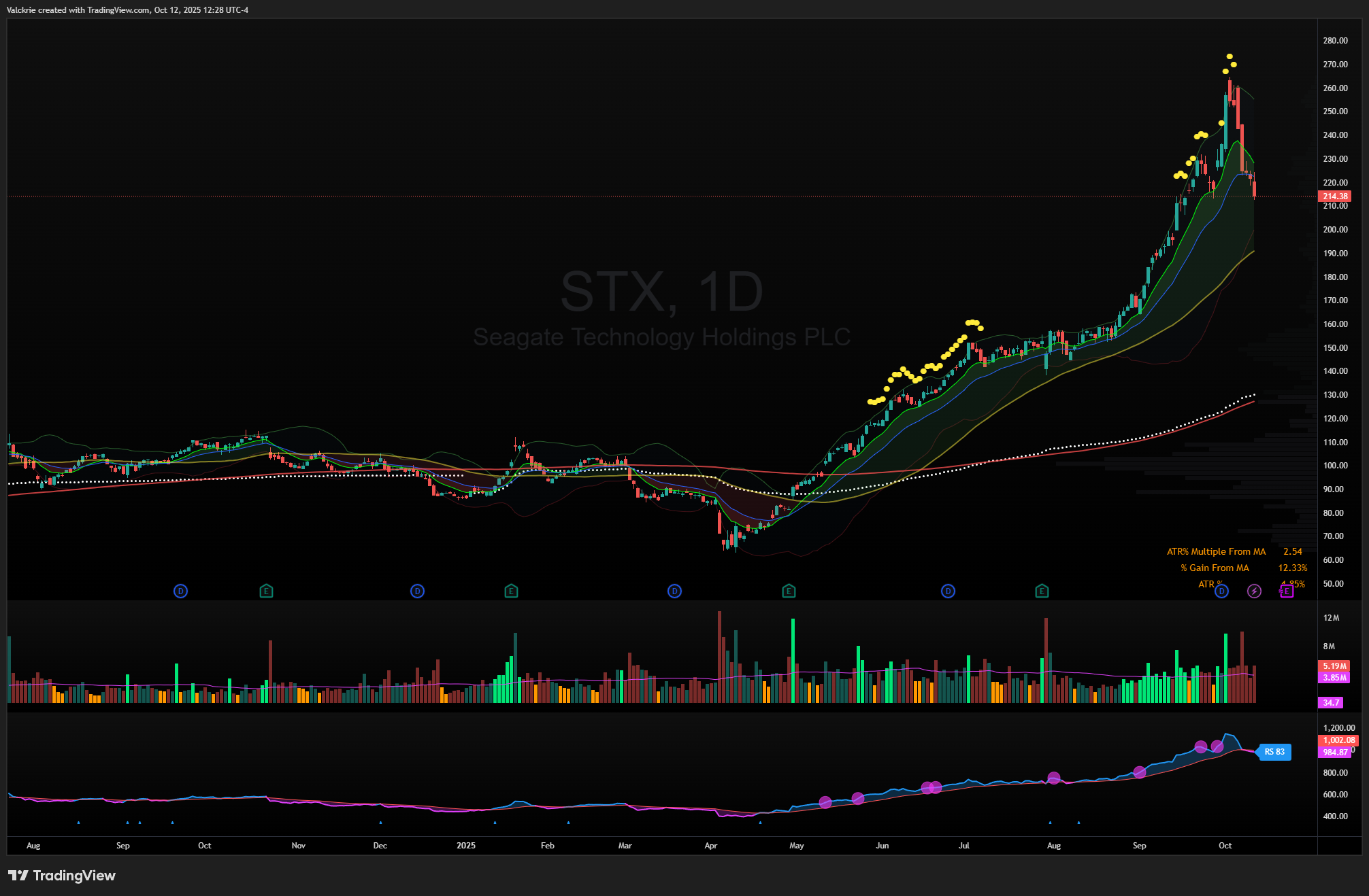 STX 0.00%↑ – Down ~18% from highs with consecutive red days, if this has a steeper selloff could find a potential bounce trade near the 50SMA support zone.