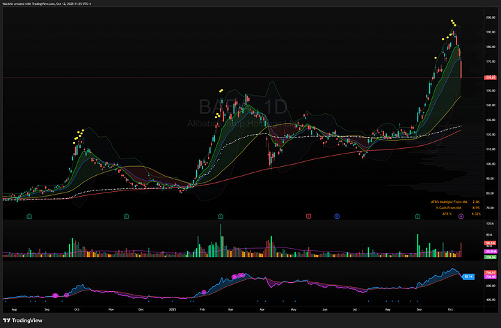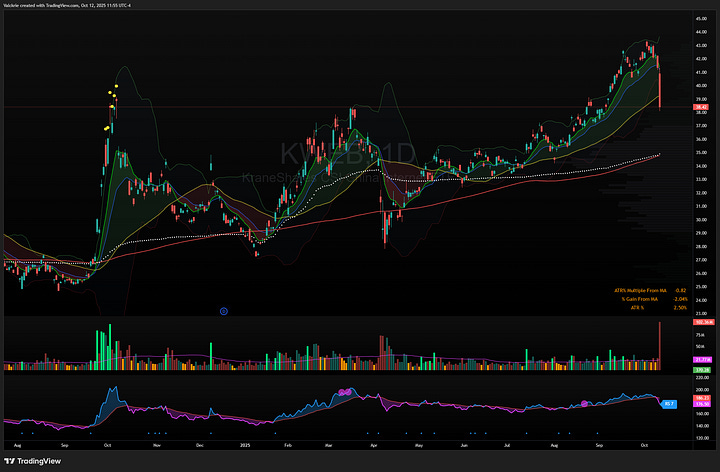 BABA 0.00%↑ KWEB 0.00%↑ – One of the hardest-hit were China tech names; potential bounce play if tensions ease.