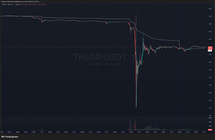 Major altcoins also suffered steep declines, XRP dropped from $2.70 to $1.26, while several memecoins, including Trumpcoin, plunged over -80%.