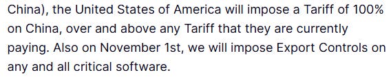Markets were hit by a wave of volatility on Friday after President Trump posted on social media that he was considering increasing tariffs on Chinese products. The comments came in response to an earlier announcement from China’s Commerce Ministry requiring foreign suppliers to obtain approval to export products containing rare-earth materials. Later in the day, after hours, Trump suggested potential tariffs could rise to as high as 100%, amplifying market fears.
