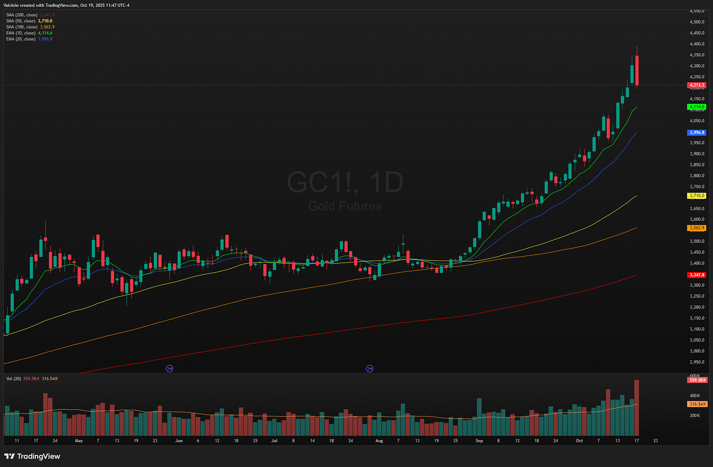 In addition, social media footage showed long queues at gold exchanges, signaling potential retail euphoria. Combined with a technical overextension and parabolic price action, Friday’s large reversal may mark the start of a pullback phase.