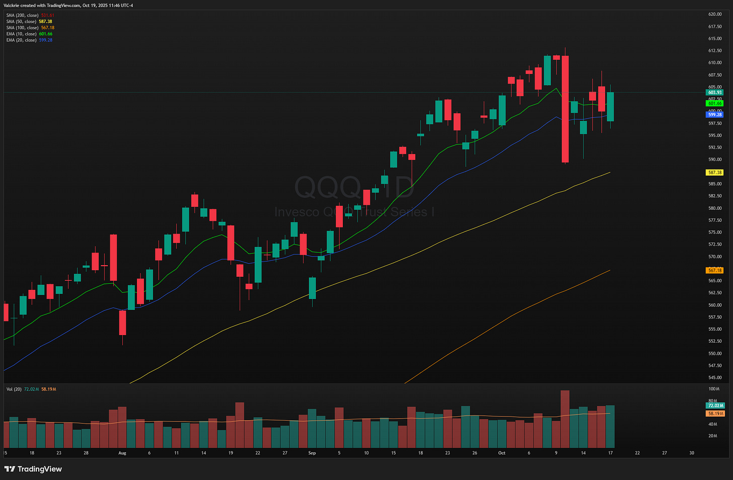 Overall, markets appear to be consolidating following last week’s volatility, with earnings season starting again, as well as awaiting geopolitical headlines, as Trump and Xi are scheduled to meet in South Korea at the end of the month.