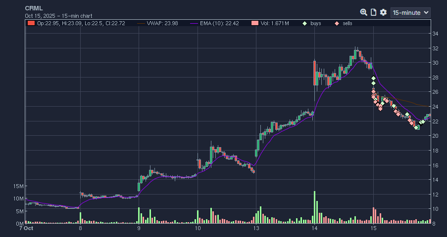 CRML 0.00%↑ UAMY 0.00%↑ metals short after daily parabolic move:
