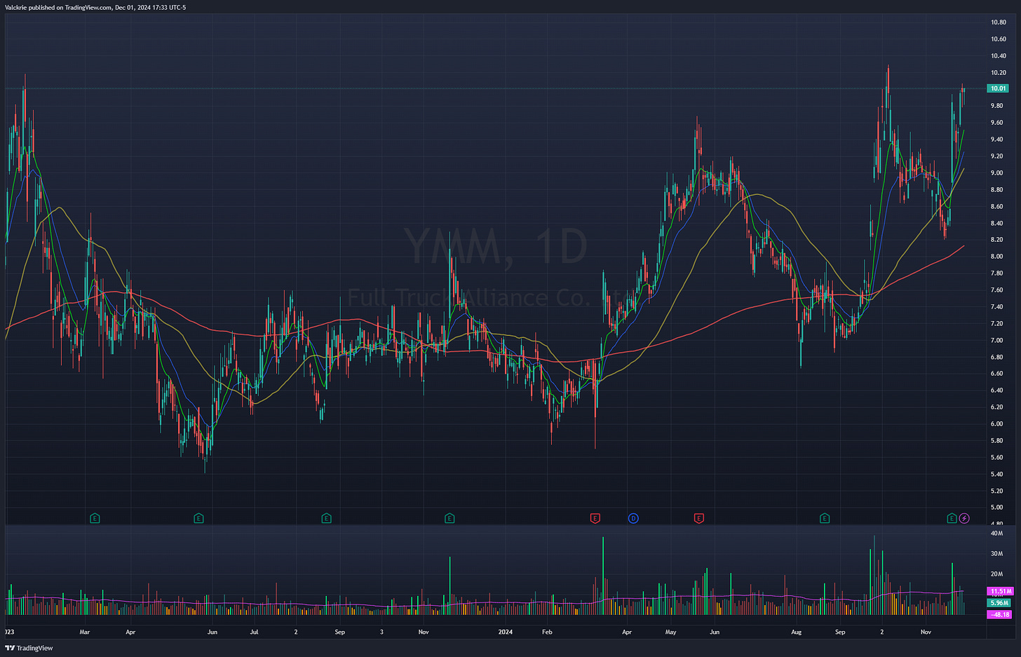 YMM 0.00%↑ lengthy stage 1 base breakout over $10 and $10.30