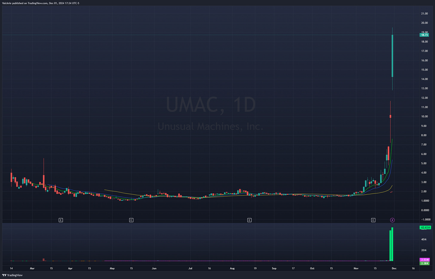 UMAC 0.00%↑ up huge on news that Trump Jr. joined the advisory board. Drone stocks are hot right now but move is getting extended and on watch for mean reversion