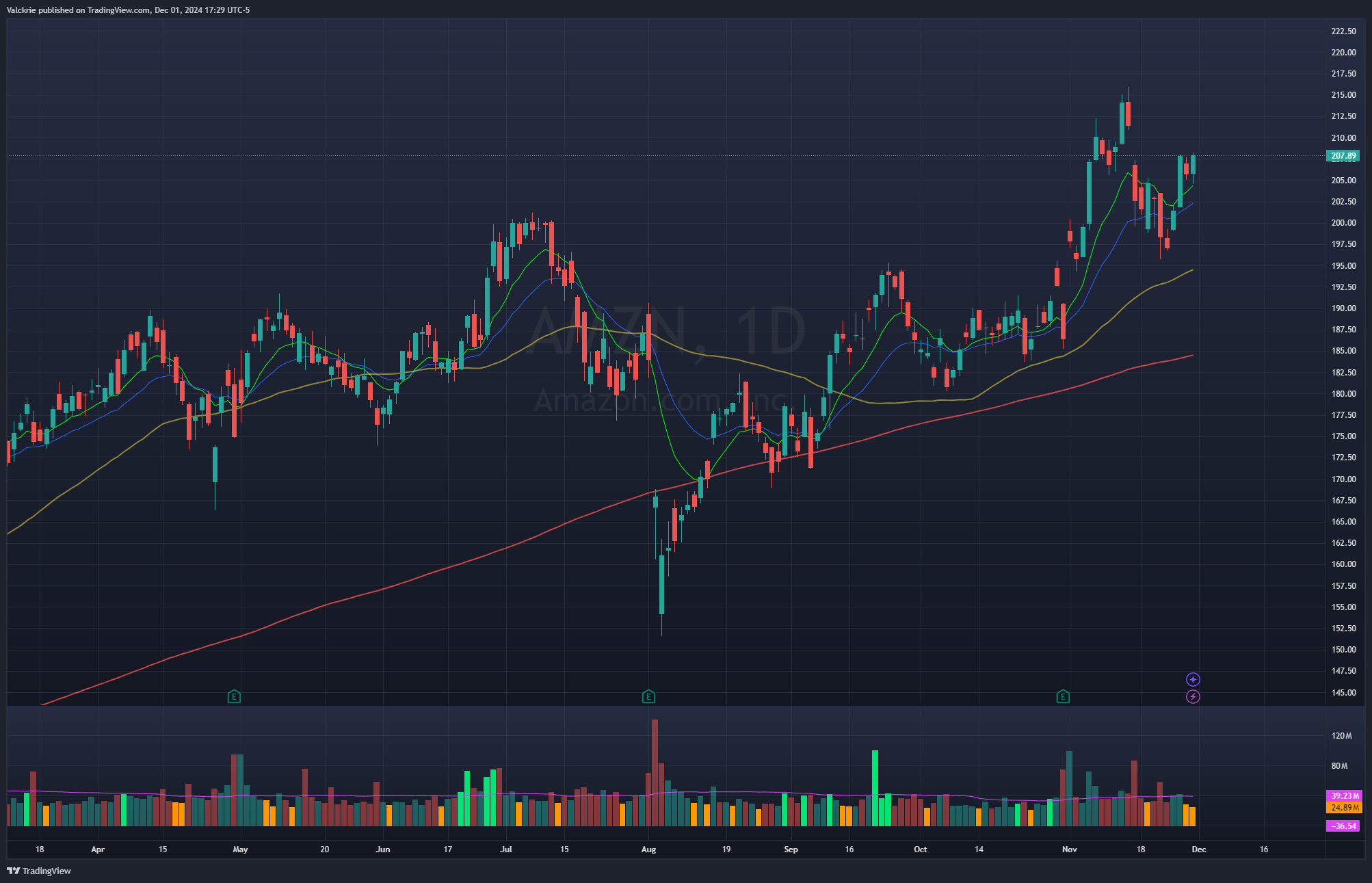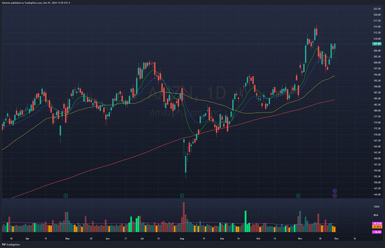 AMZN 0.00%↑ strong Black Friday sales, successful retest of $200 area, will probably rally to fill the gap