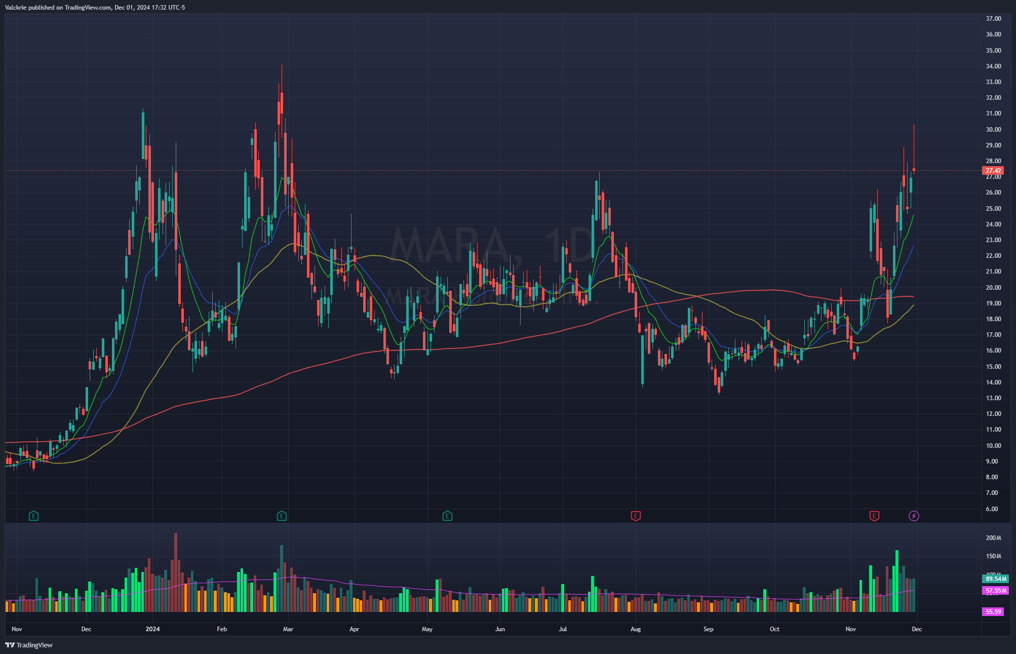 MARA 0.00%↑ rejected daily resistance at $30, may take some more time before breaking through this area
