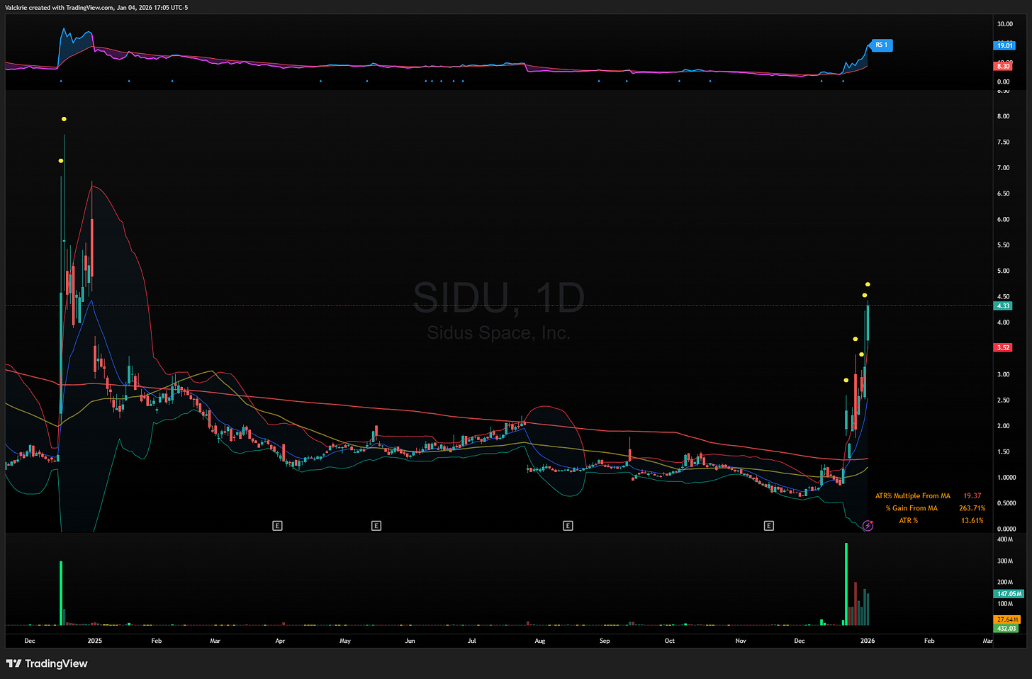 SIDU 0.00%↑ a microcap space stock that continues to rally despite multiple offerings the week prior, contributing to the short squeeze. Another move higher next week and could be a potential short trade.