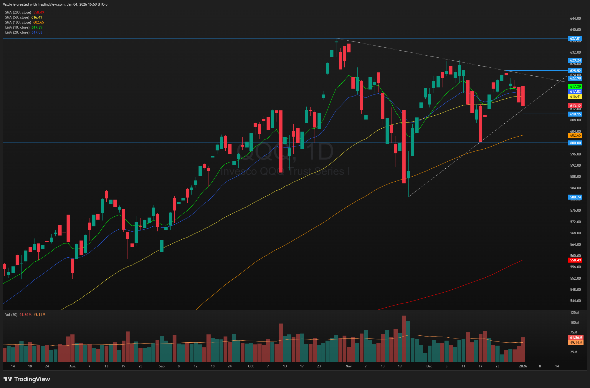 QQQ 0.00%↑ also experienced an intraday drop -2% from highs to lows, but overall remains in a tightening wedge formation on the daily chart, which could resolve in a directional move in the coming weeks.