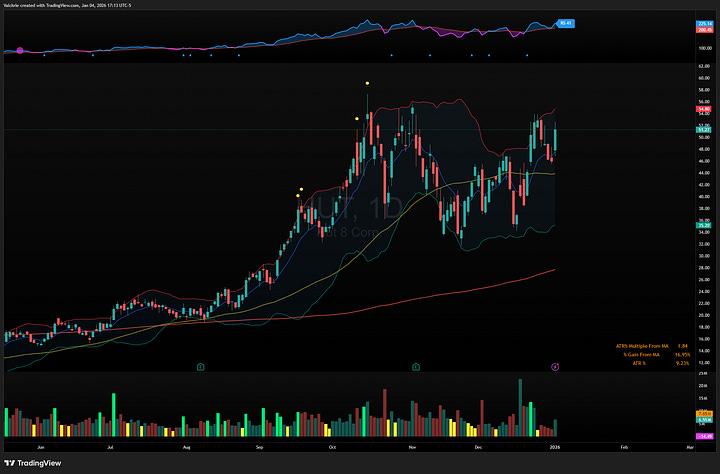Despite the turbulence, the VIX finished lower on the day, and small caps notably diverged from the weakness, with IWM 0.00%↑ outperforming and closing up 1%. Under the surface, market breadth was actually constructive, as many speculative small and mid cap stocks rallied strongly, likely reflecting the unwind of late December tax loss selling and subsequent repurchasing to start the new year.