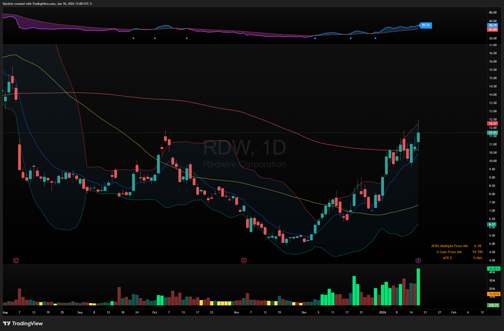 RDW 0.00%↑ continues to trade exceptionally heavy volume as it breaks out above the 200 moving average.