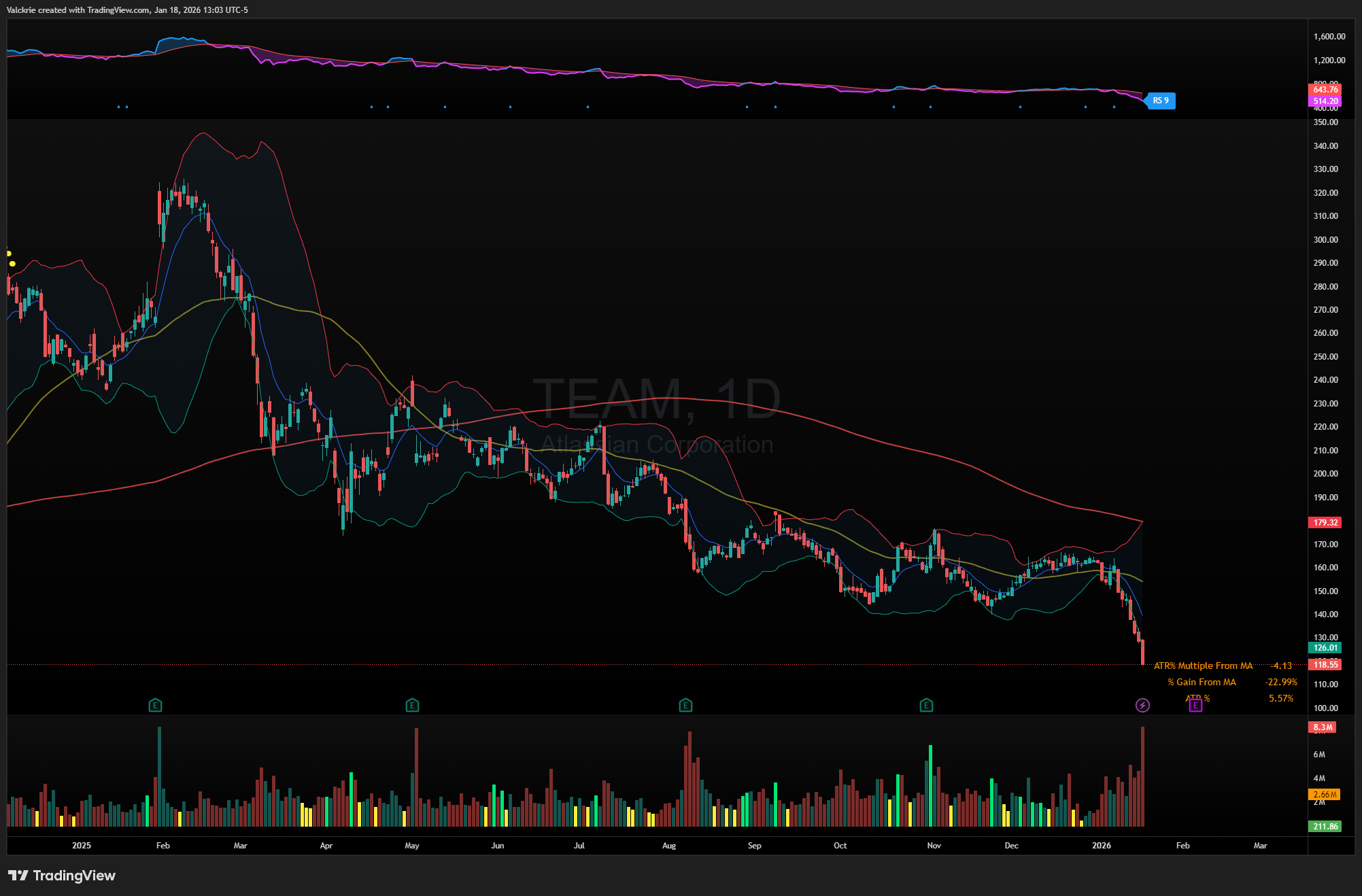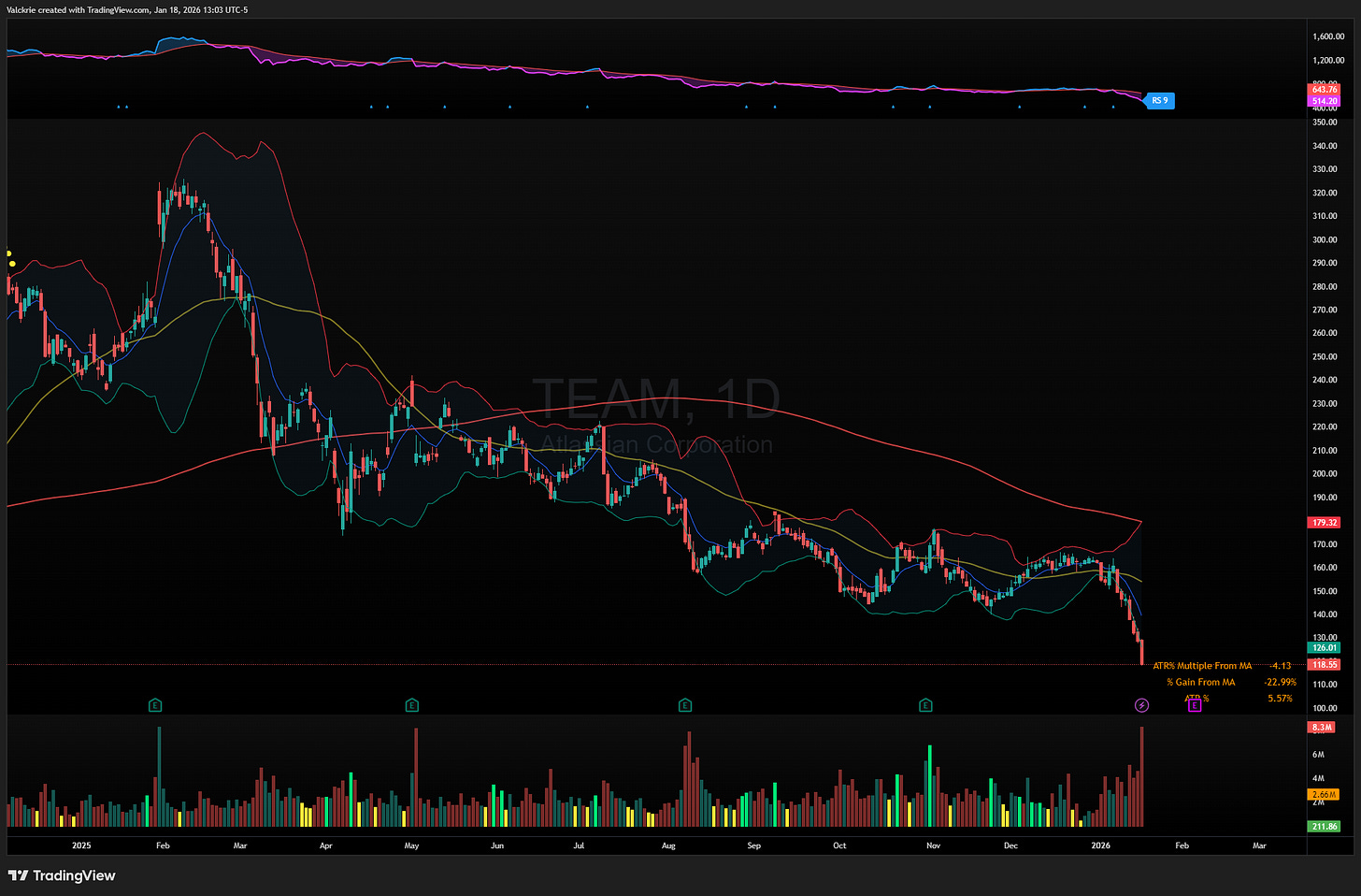 Other software names have been selling off for an extended period and could be setting up for a reflexive bounce if downside extends further, including TEAM 0.00%↑ and NOW 0.00%↑.