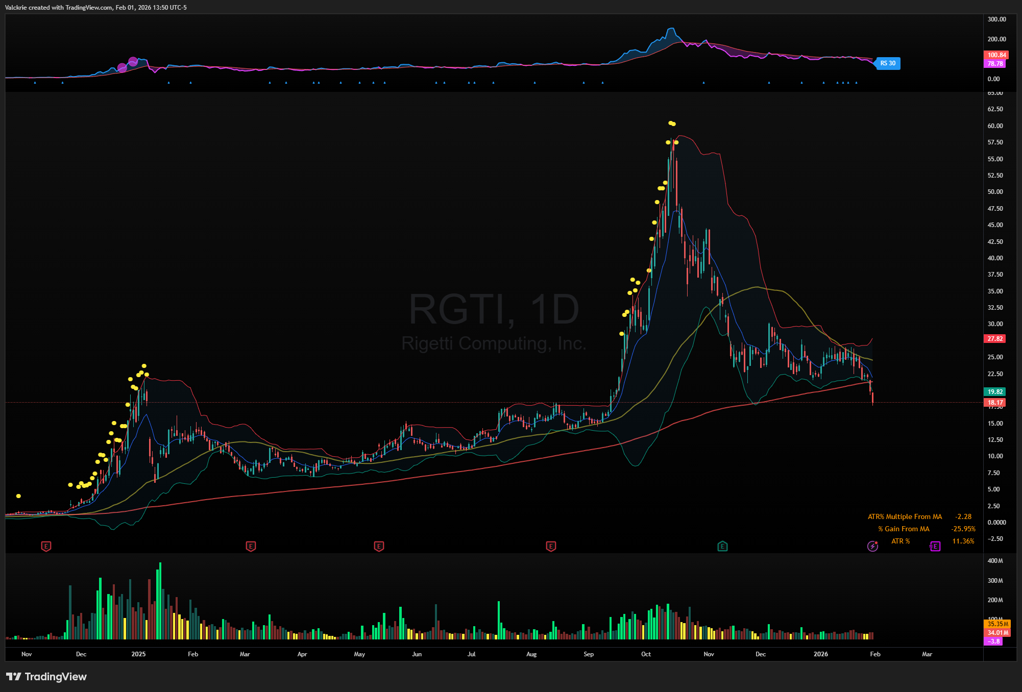 Strong breakdown analysis on quantum names. That sector-wide breach of the 200-SMA across QBTS, IONQ and QUBT tells alot about how quickly speculative appetite can evaporate when momentum rolls over. The metals deleveraging probably amplified risk-off flows everywhere. Been watching how capital rotates post-selloff and honestly not seeing clear winners yet, the breadth is just weak. earnings szn might shake things up but technically most setups look damaged rn.