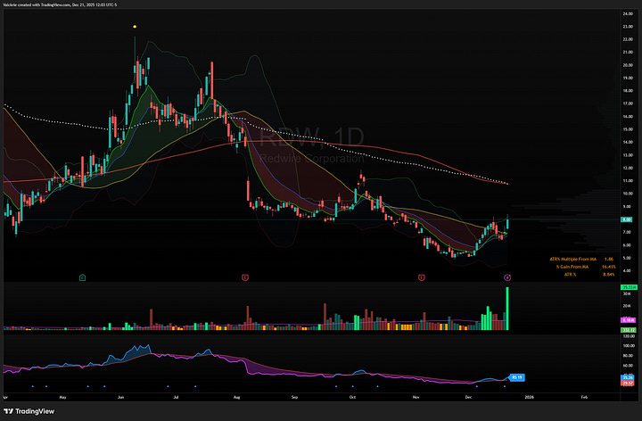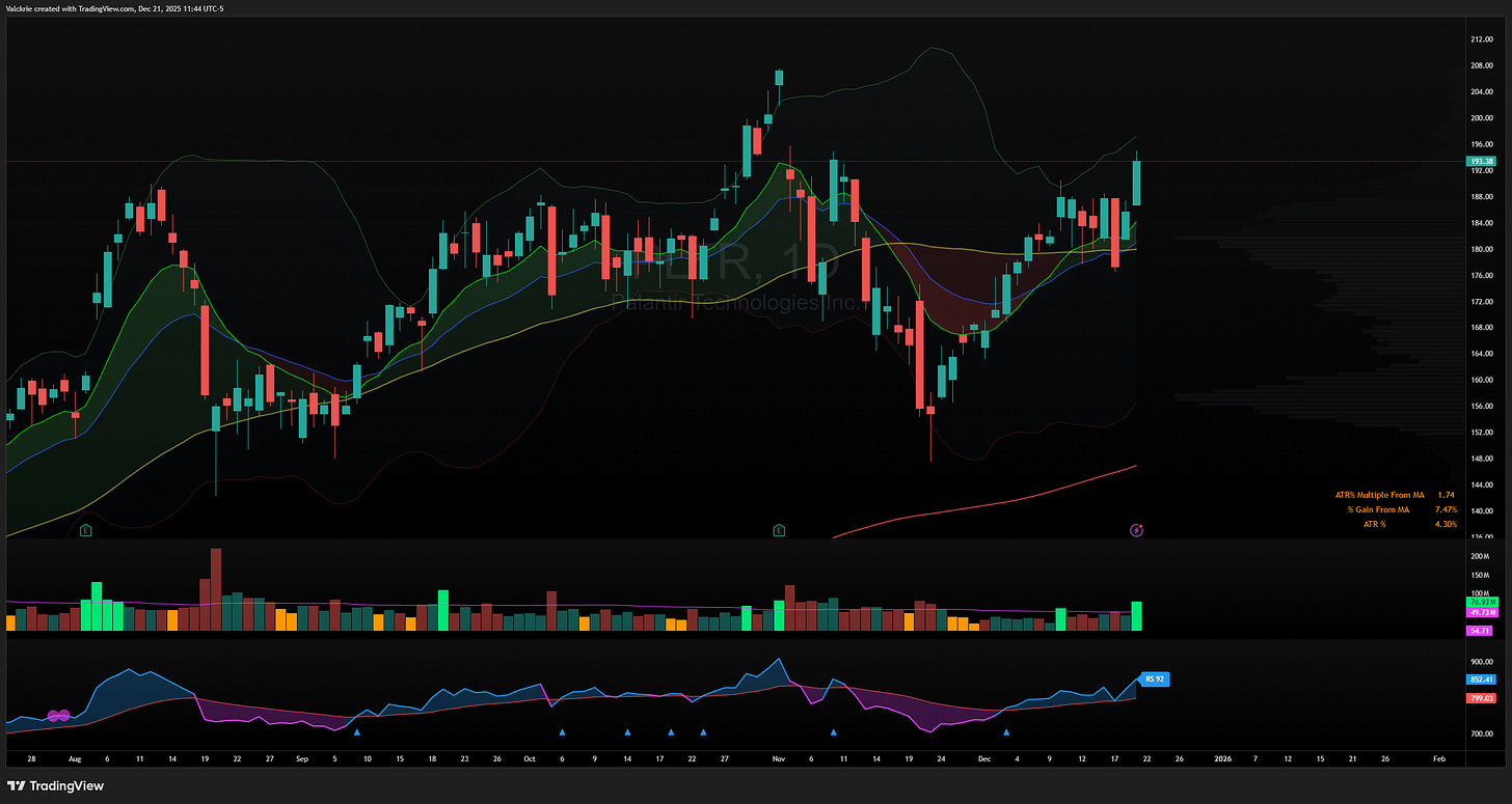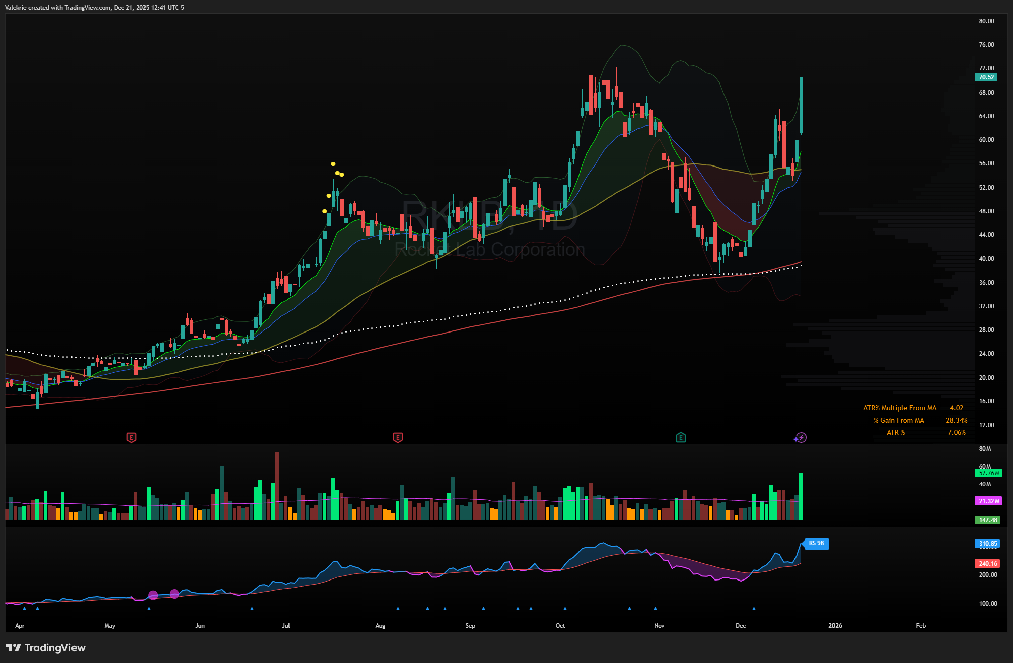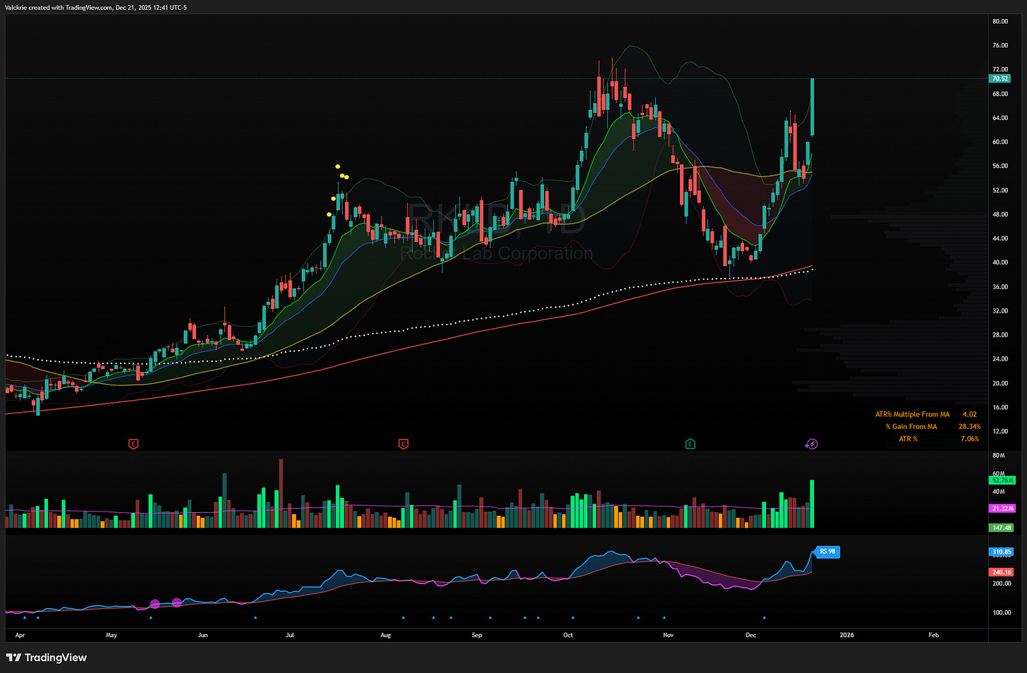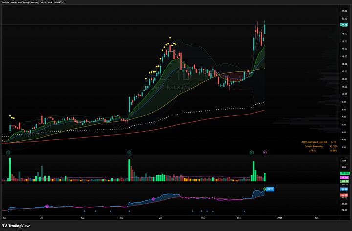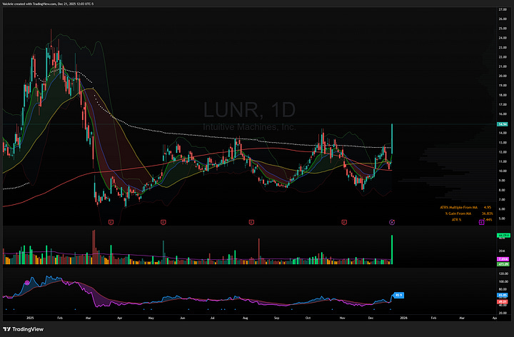 The broader space theme continues to see strong volume and gains, with the major narrative into 2026 centered around a potential SpaceX IPO. Other names to watch within the space theme include LUNR 0.00%↑ PL 0.00%↑ BKSY 0.00%↑ and RDW 0.00%↑.