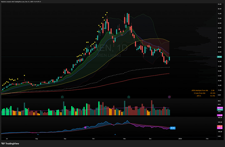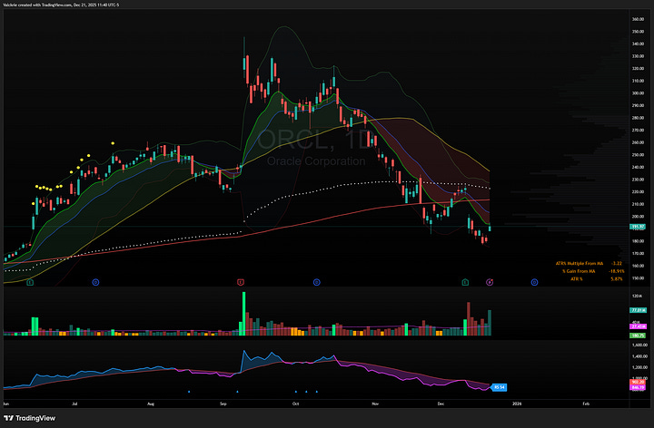 Following on from last week’s weak close, the market gapped up on Monday but sold off steadily throughout the session, starting the week on a negative note. The selling pressure intensified into Wednesday, with QQQ 0.00%↑ finishing down roughly 2% from open to close after overnight news that China had built a new working prototype of an EUV lithography machine. That headline weighed heavily on semiconductors, with ASML 0.00%↑ and NVDA 0.00%↑ among the hardest hit. Datacenter stocks were also caught in the downdraft, as ORCL 0.00%↑ continued to slide amid negative headlines, including renewed rumors of datacenter delays despite company refutations, along with reports that Blue Owl Capital had backed out of funding Oracle’s planned $10B Michigan datacenter.