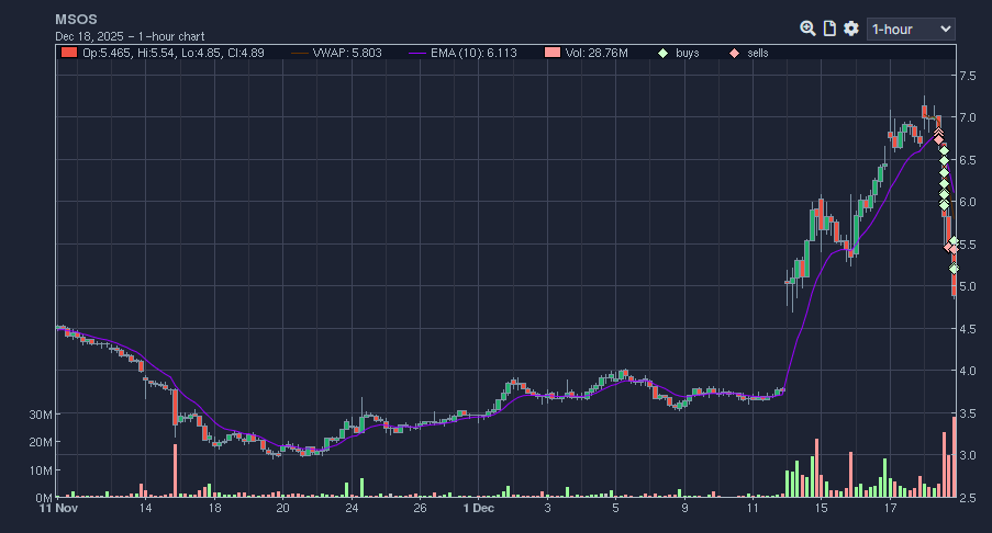 MSOS 0.00%↑ sold off on Thursday, resulting in a sell the news event as President Trump considered an executive order to reclassify marijuana: