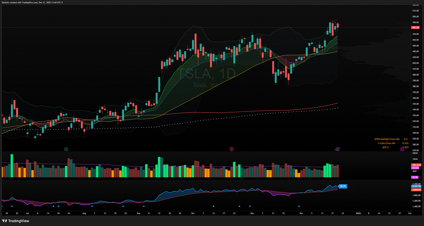 TSLA 0.00%↑ remains strong, consolidating near all-time highs.