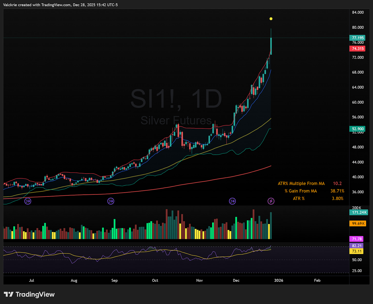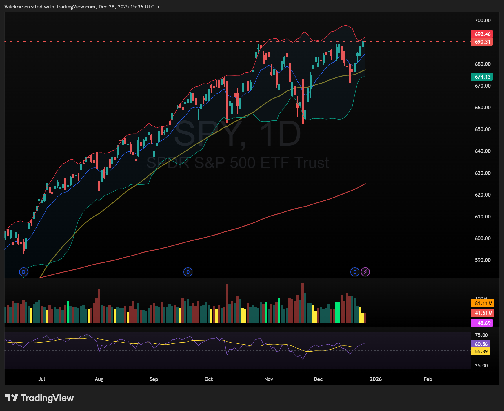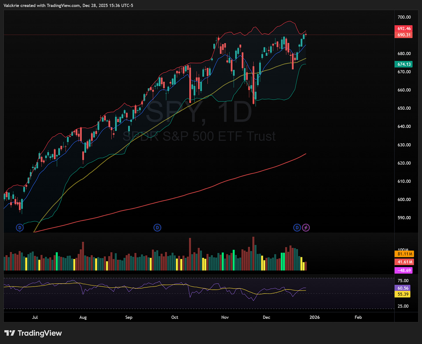 It was a shortened holiday week, but the market still managed to close strongly, with the SPY 0.00%↑ closing at an all time high, aligning well with seasonal tendencies that historically favour positive returns during this period. On the equity side, trading conditions were relatively low volatility and sideways, shaped by a mix of tax loss harvesting and early window dressing activity. Space related stocks pulled back after their strong prior rally, taking a breather as momentum cooled.